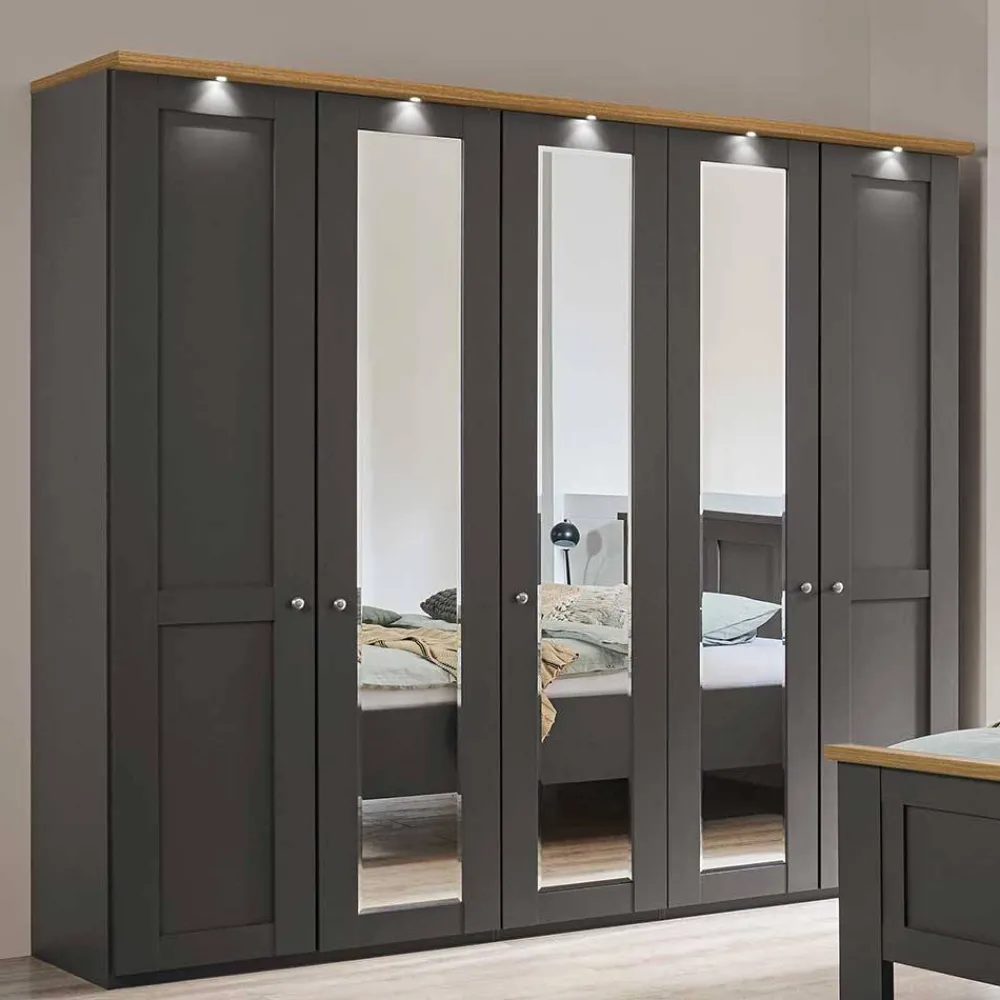 - Hochwertige Schlafzimmer Möbel in Dunkelgrau und Eiche Bianco
