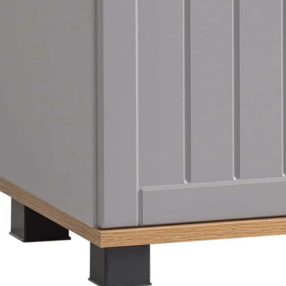 - Schicker Waschbeckenschrank in Platingrau und Eichefarben