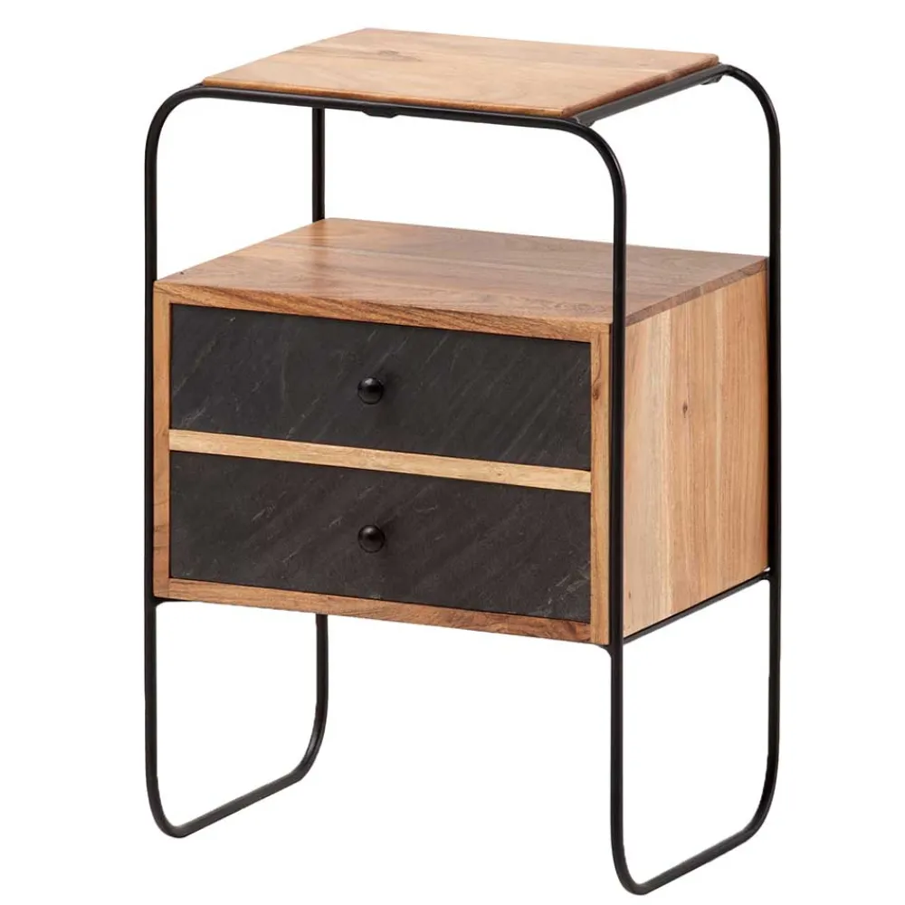 - Aktueller Boxspringbett Nachttisch in Schwarz und Akaziefarben
