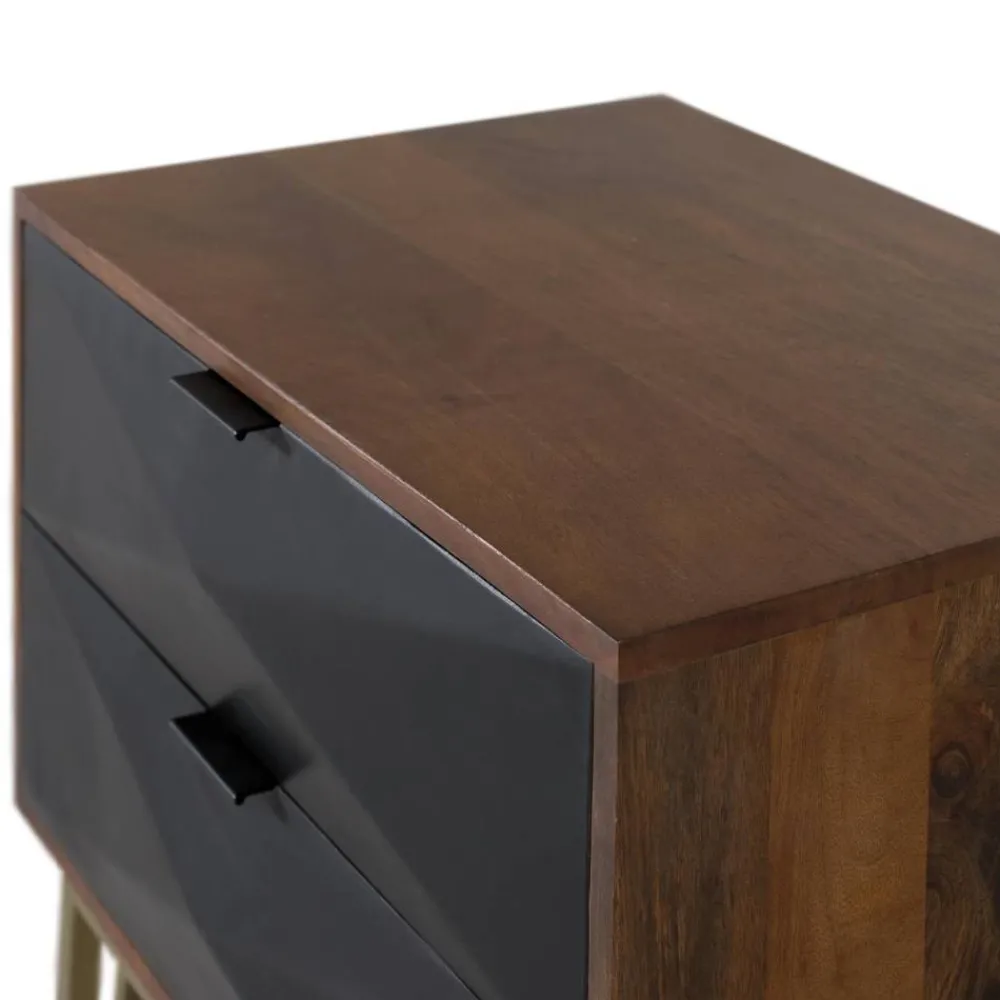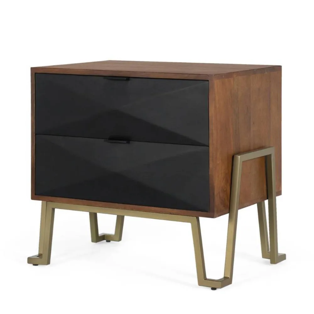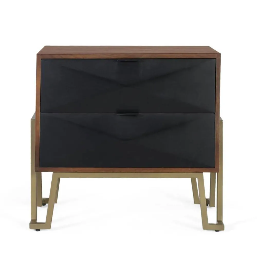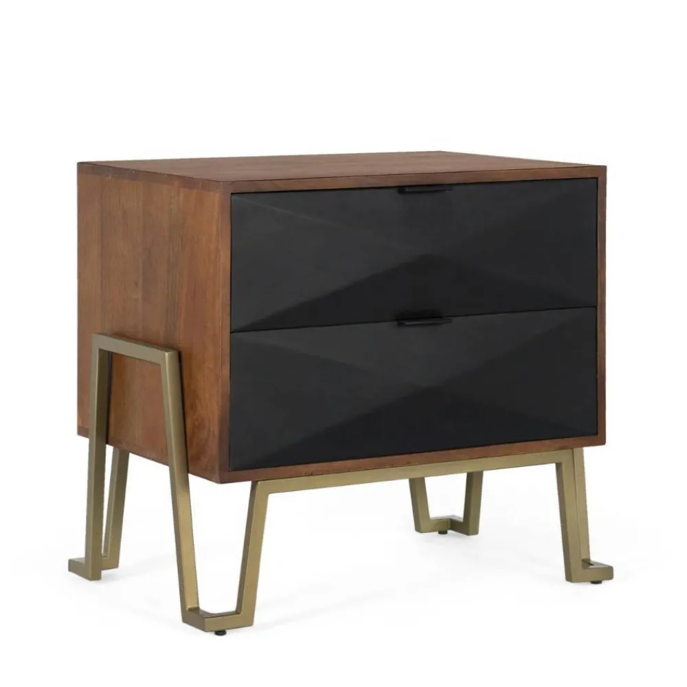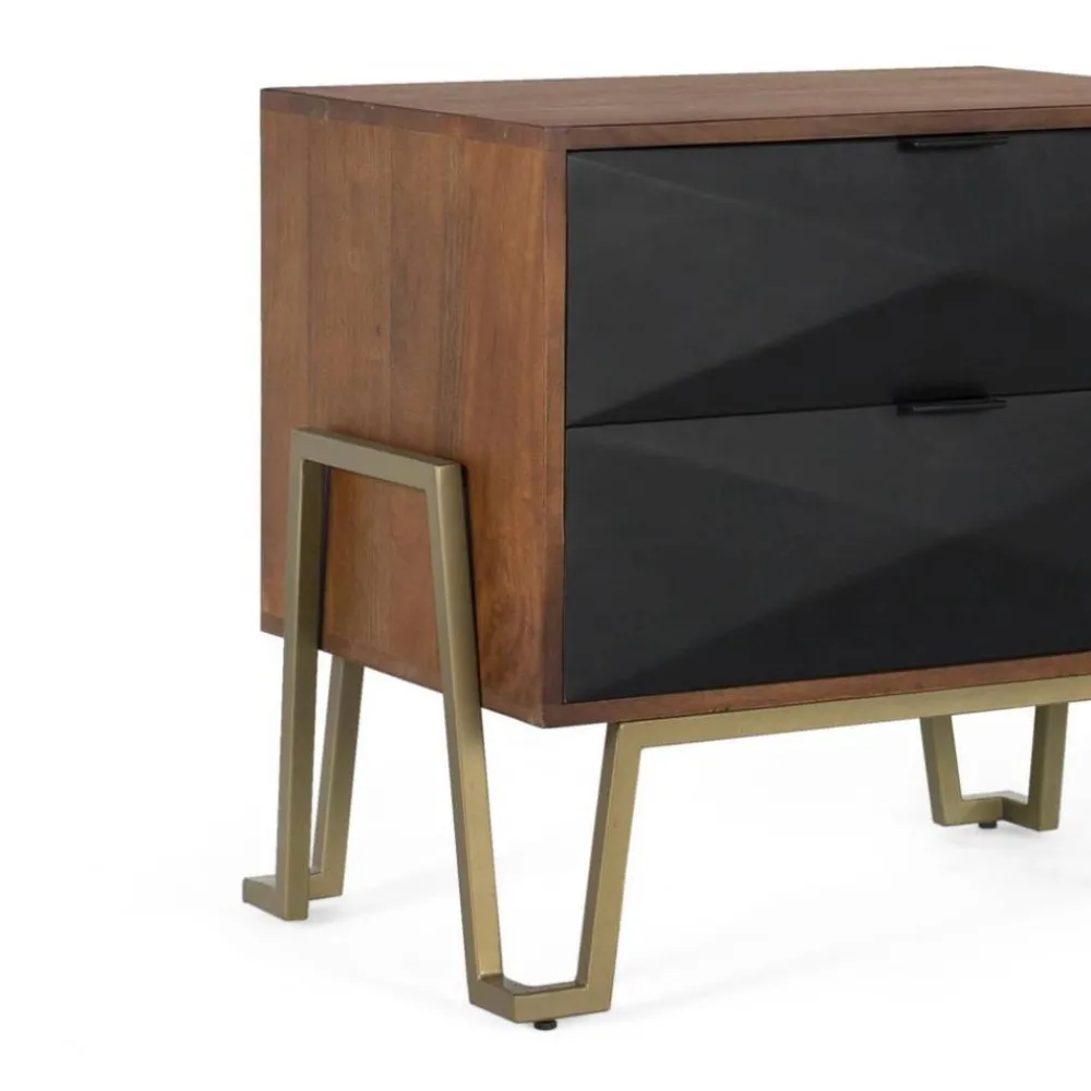 - Interessante Nachtkommode in Schwarz sowie Nussbaum- und Goldfarben