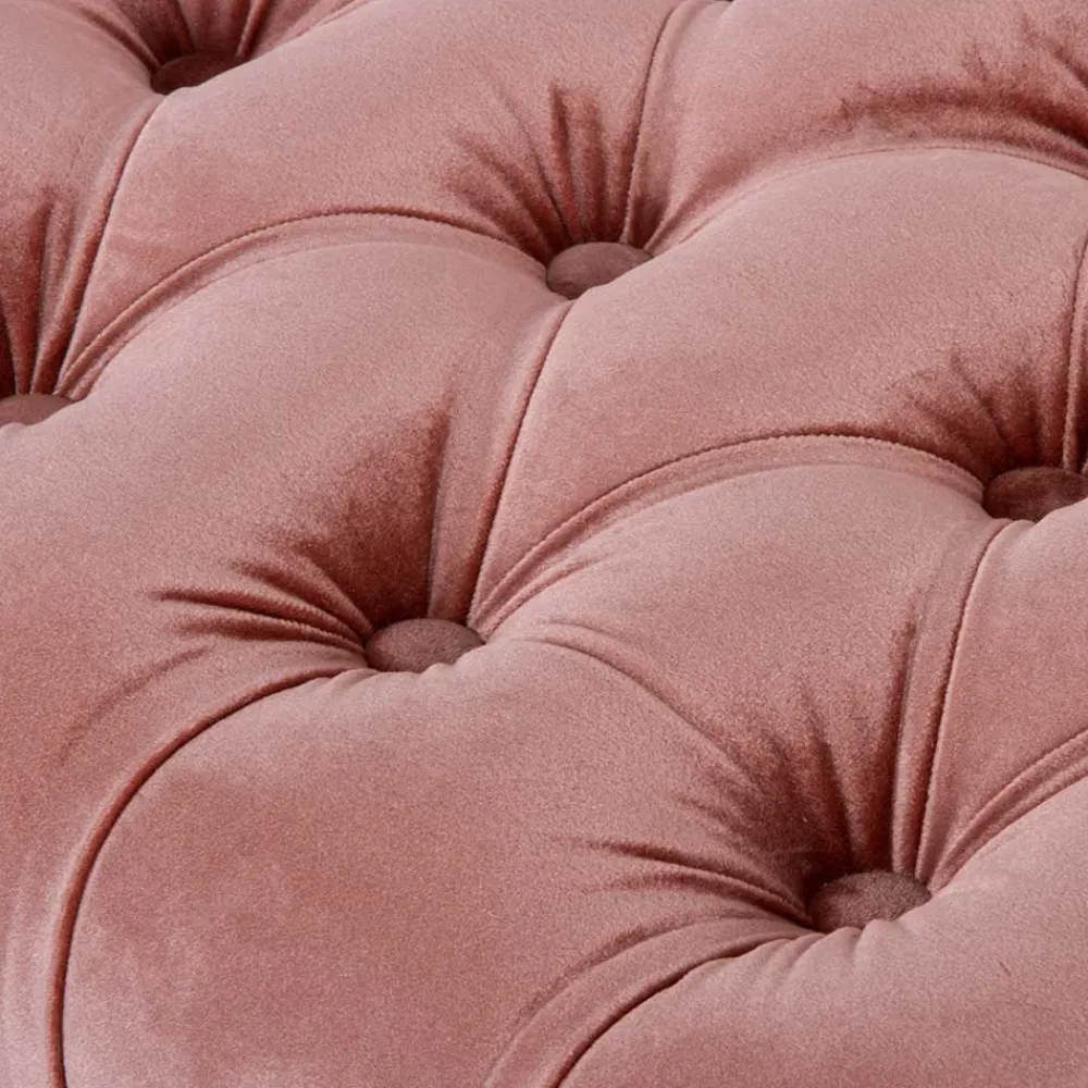 - Samtbezug aus 100 % Polyester mit dekorativer Knopfheftung