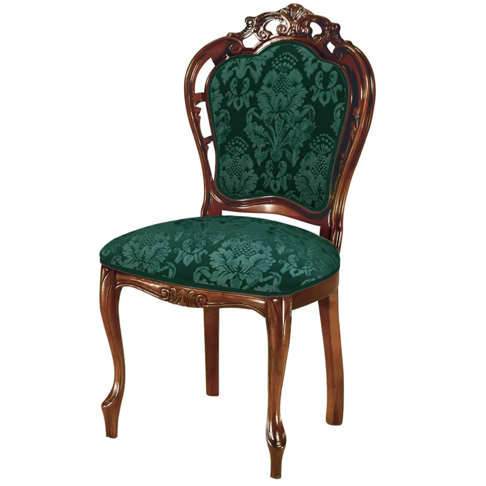 - Luxuriöser Polsterstuhl in Dunkelgrün und Nussbaumfarben