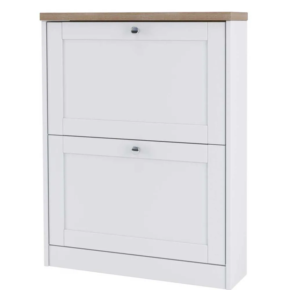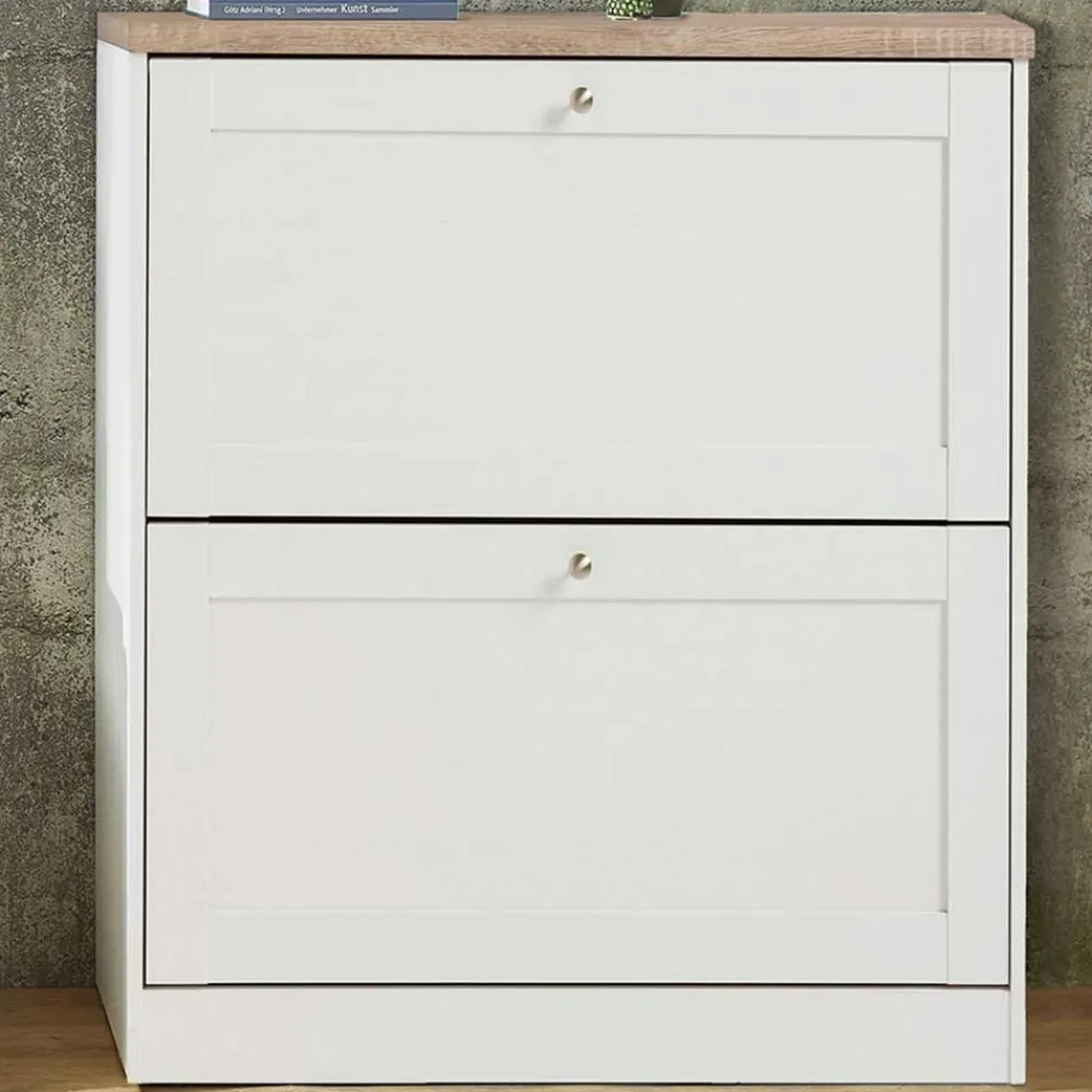 - Attraktiver Schuhschrank in Weiß und Sonoma Eiche