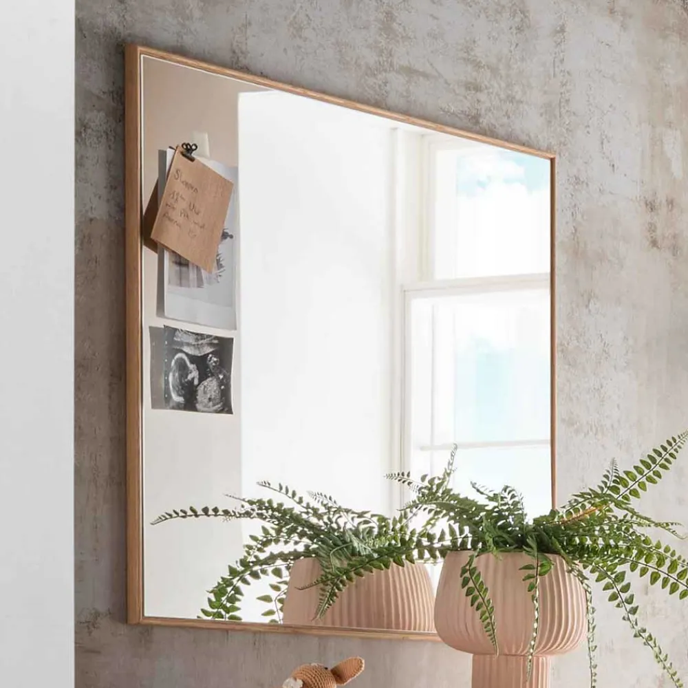 - Aus Spiegelglas und Asteiche Massivholz gefertigt
