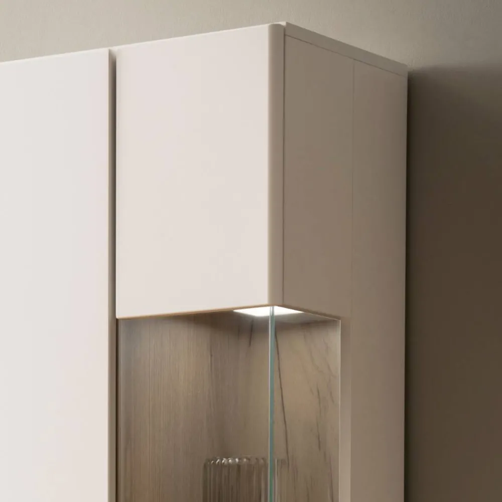 - Schicke Vitrine in Weiß, Weiß matt und Eichefarben