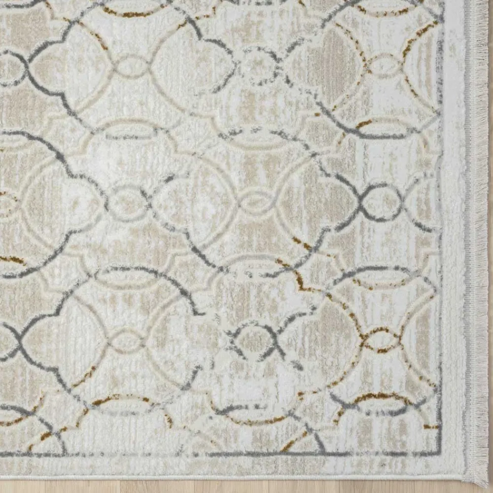 - Wohnlicher Teppich in Hellgrau und Cremefarben