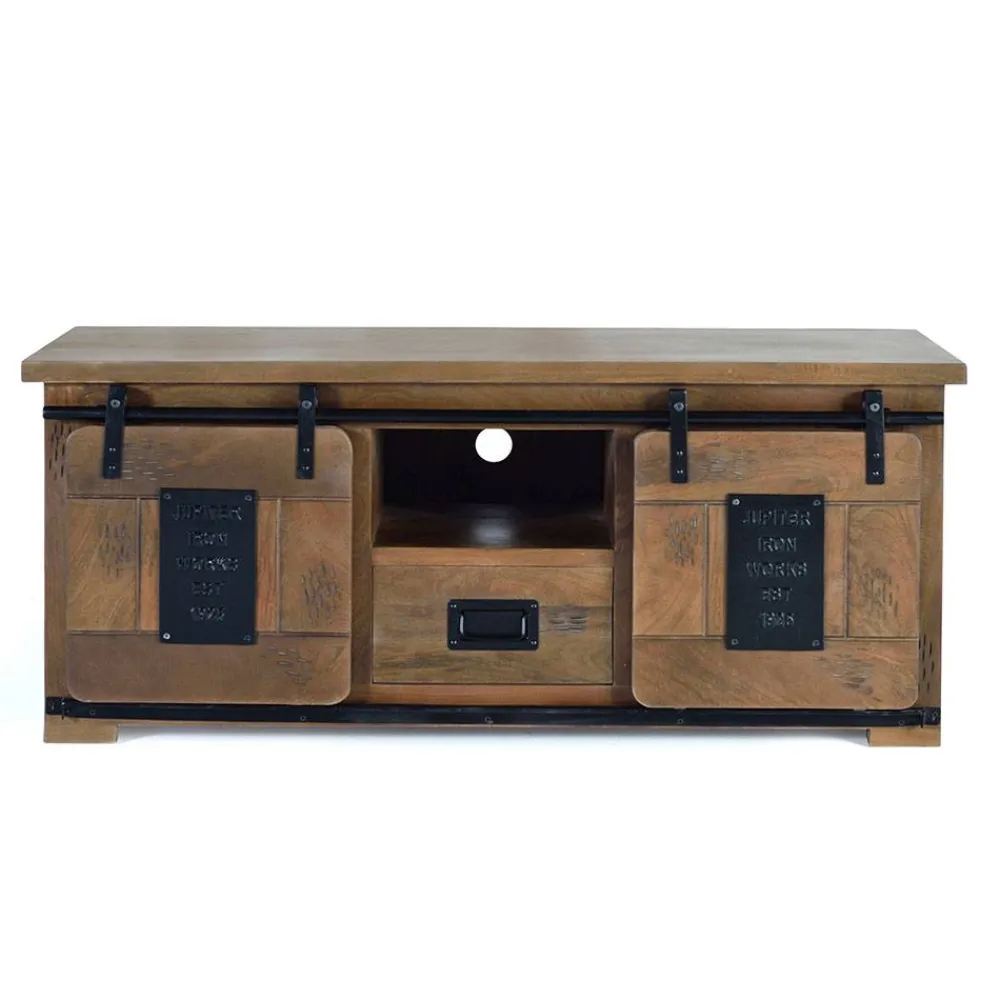 - Kompaktes TV Lowboard in Mangoholz Naturfarben und Schwarz