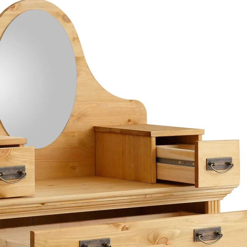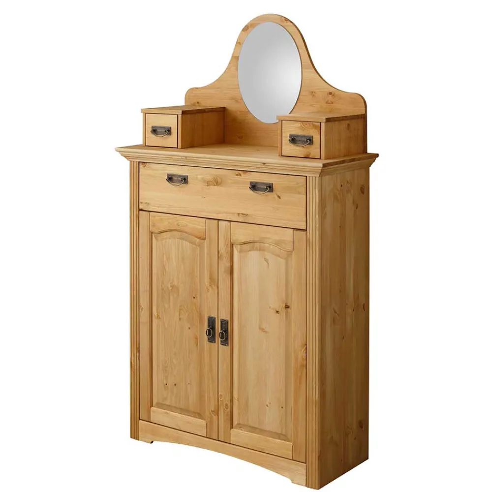 - Aus massivem Kiefernholz und Spiegelglas gefertigt