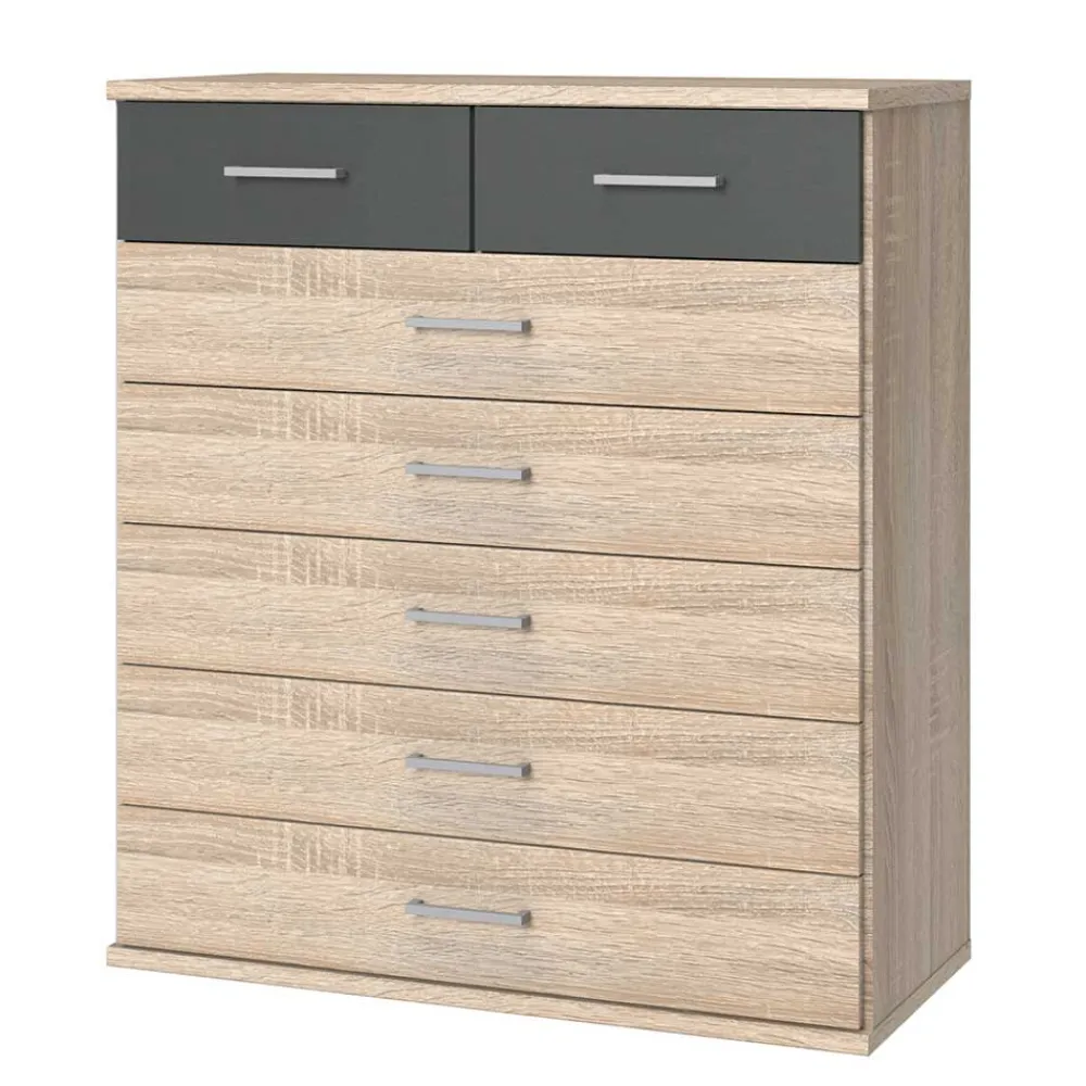 - Zeitlose Kommode in Eiche Sägerau und Dunkelgrau