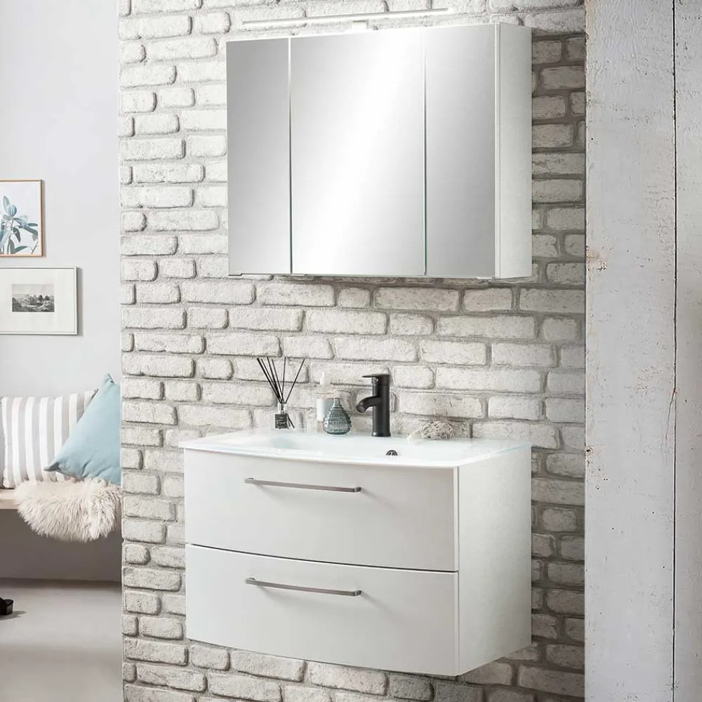 - Maße mit Aufbauleuchte (BxHxT): 80×67,5×28 cm