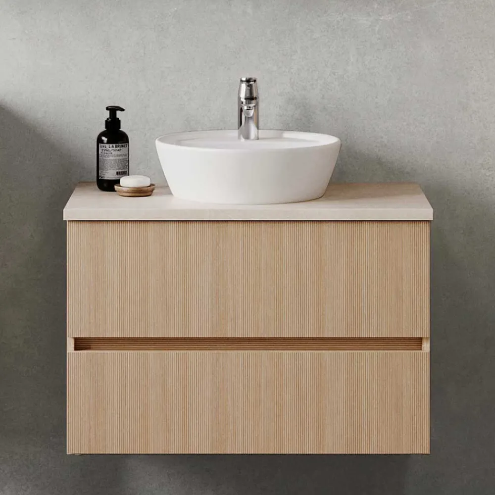 - Erstklassiger Waschtischschrank in Eiche hell und Beige