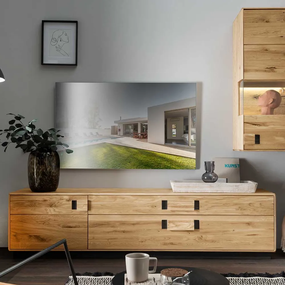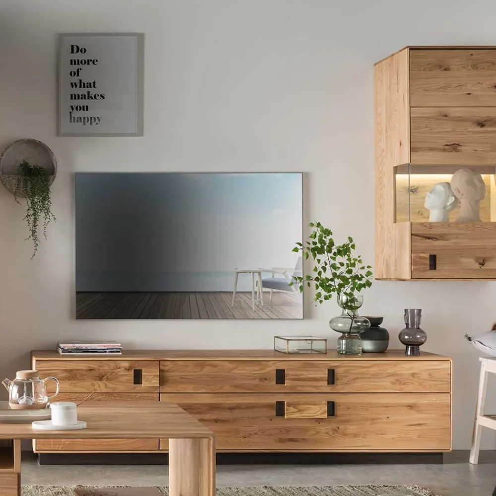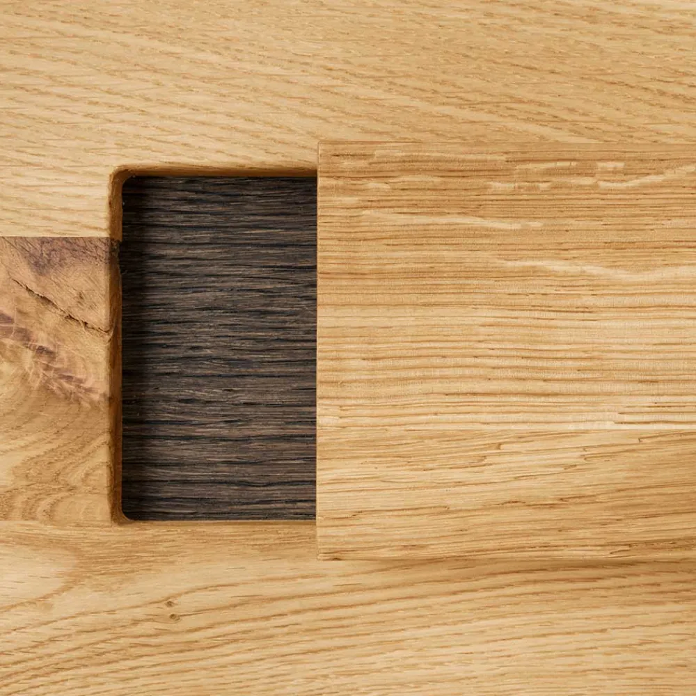 - Gefertigt aus Wildeiche (Front) und Eiche (Korpus) Massivholz