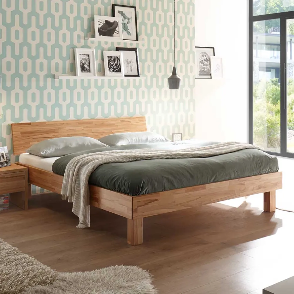 - Solides Bett in Kernbuchefarben