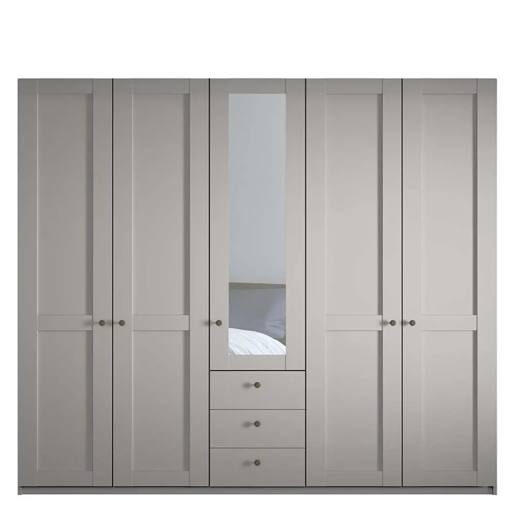 - Drei Fachelemente innen, Breite: 96,4/47,5/96,4 cm, jeweils mit zwei Einlegeböden und einer Kleiderstange ausgestattet