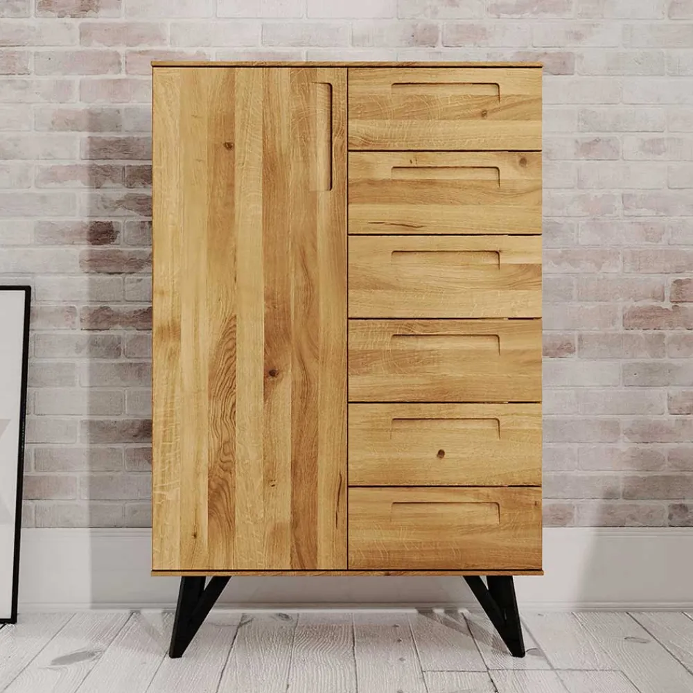 - Geräumiges Highboard in Wildeichefarben und Schwarz