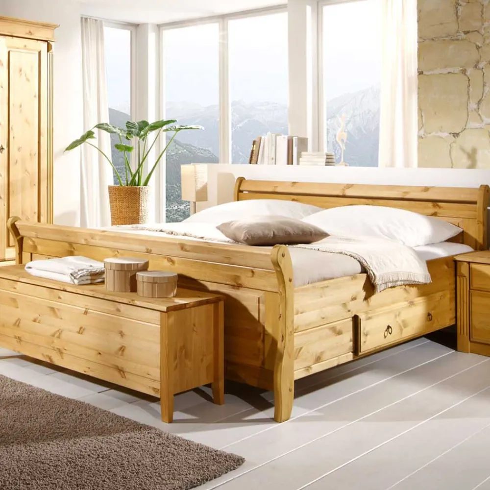 - Schönes Doppelbett in Kiefer laugenfarbig