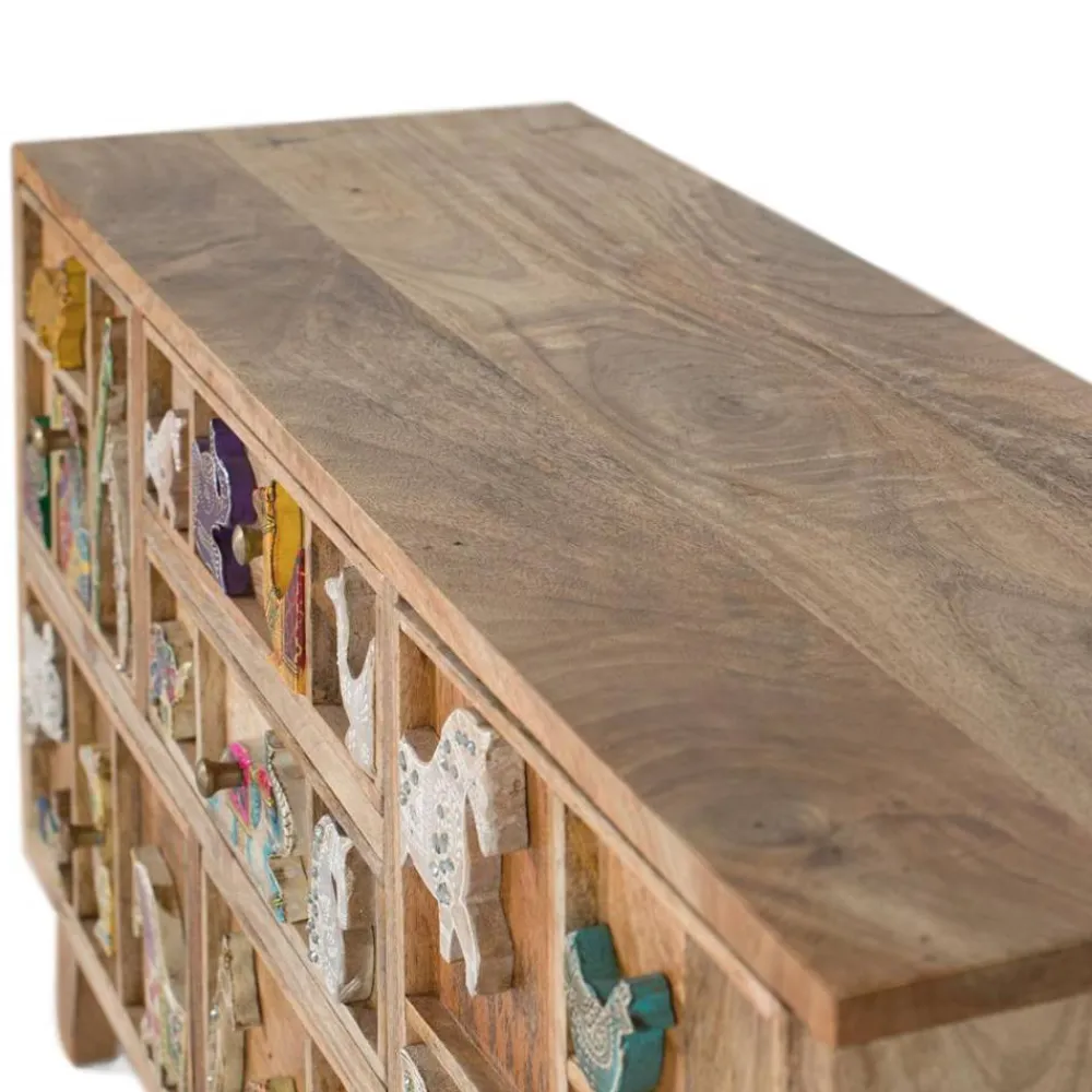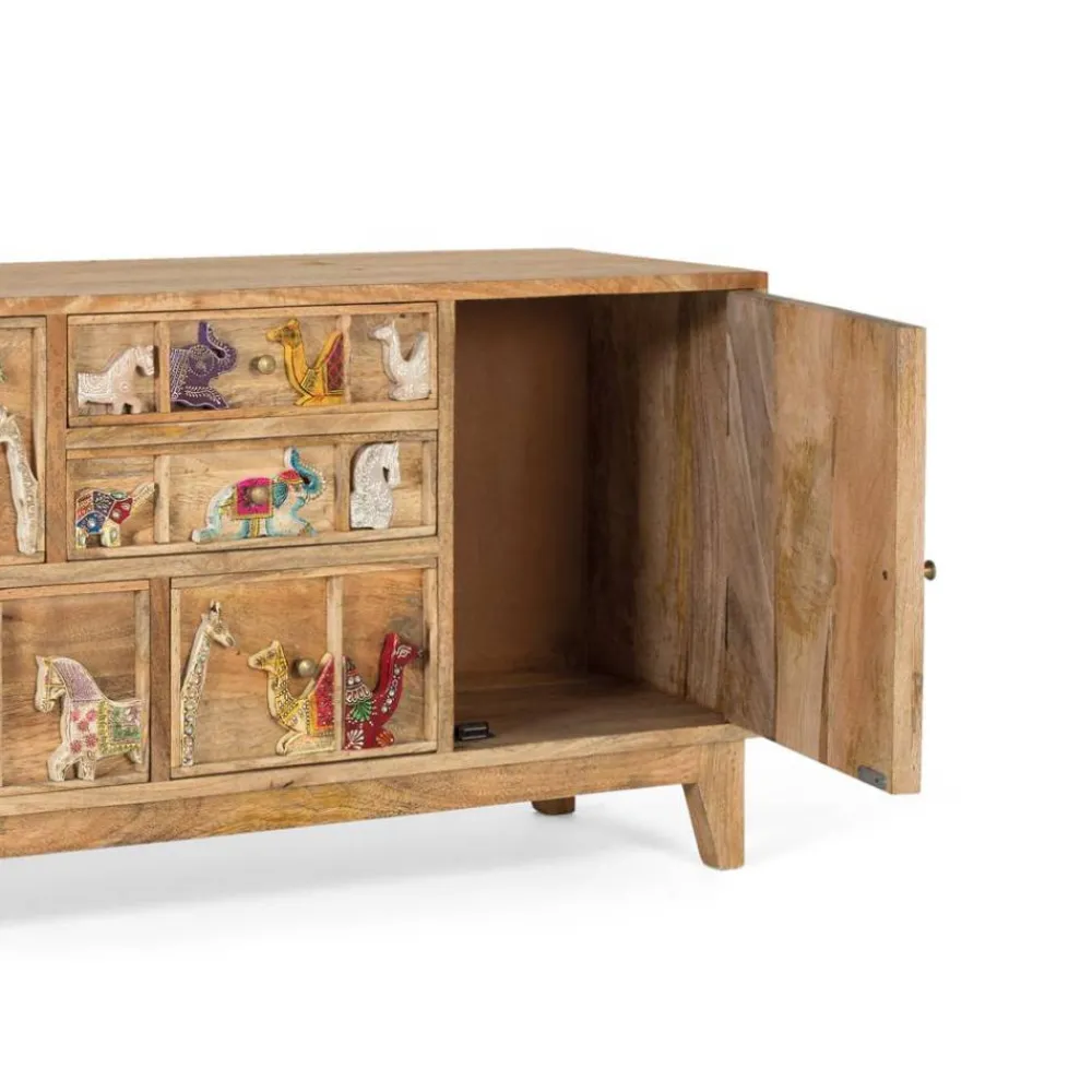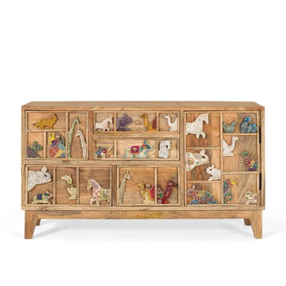 - Kunstvolles Sideboard in Mangoholz Naturfarben und Bunt