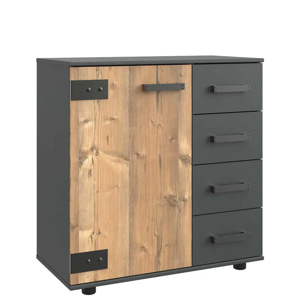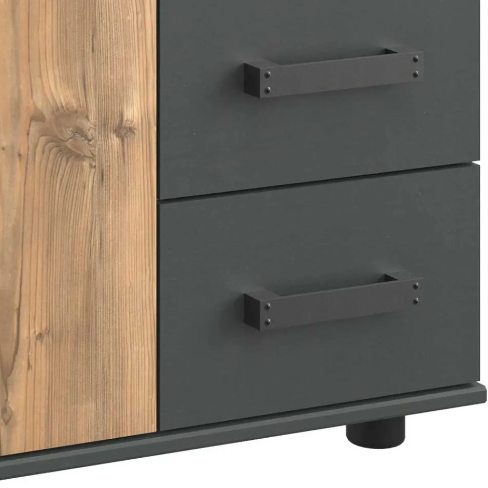 - Kontraststarke Kommode in Tanne Holzoptik und Dunkelgrau