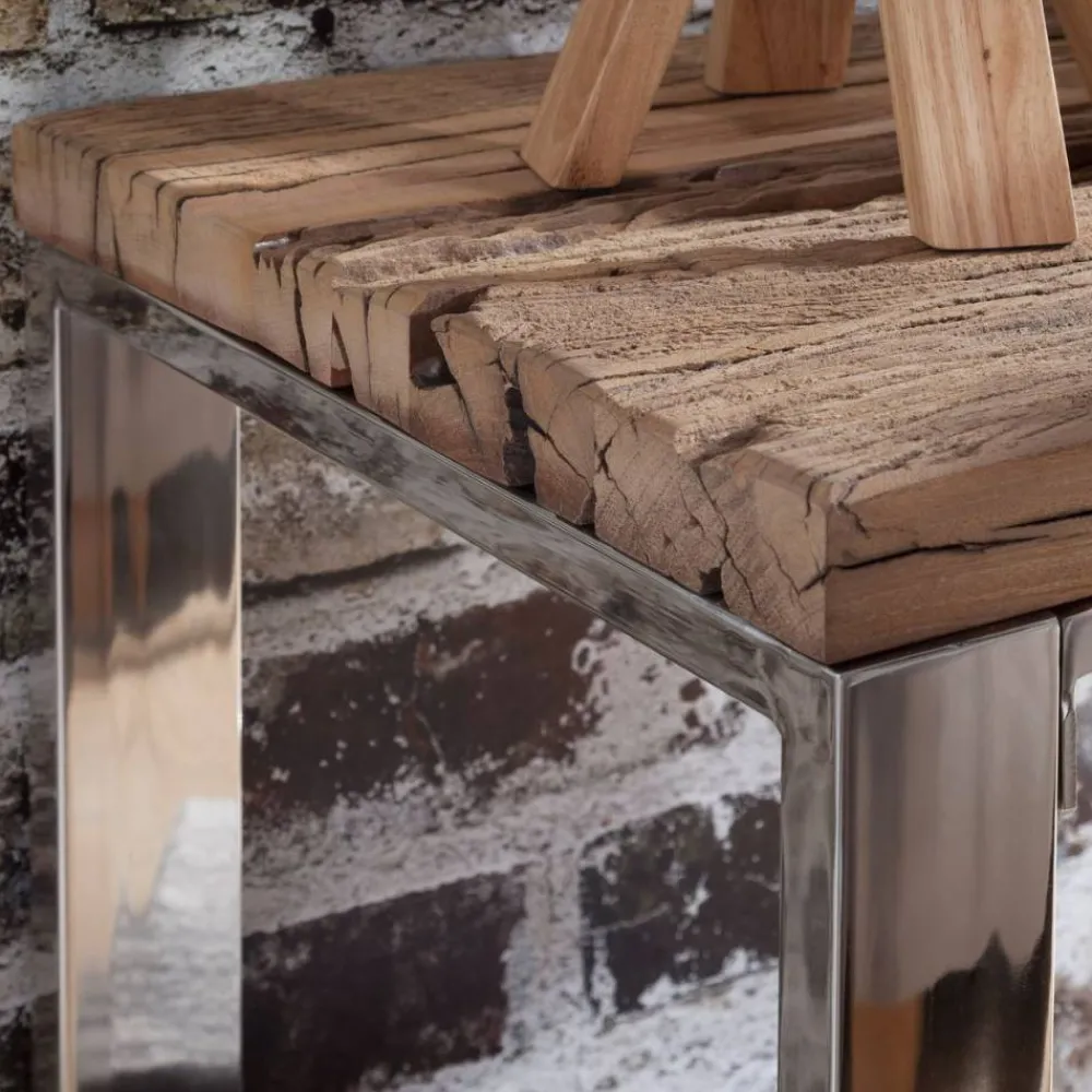- Kontraststarker Konsolentisch in Akazie Naturfarben und Chrom