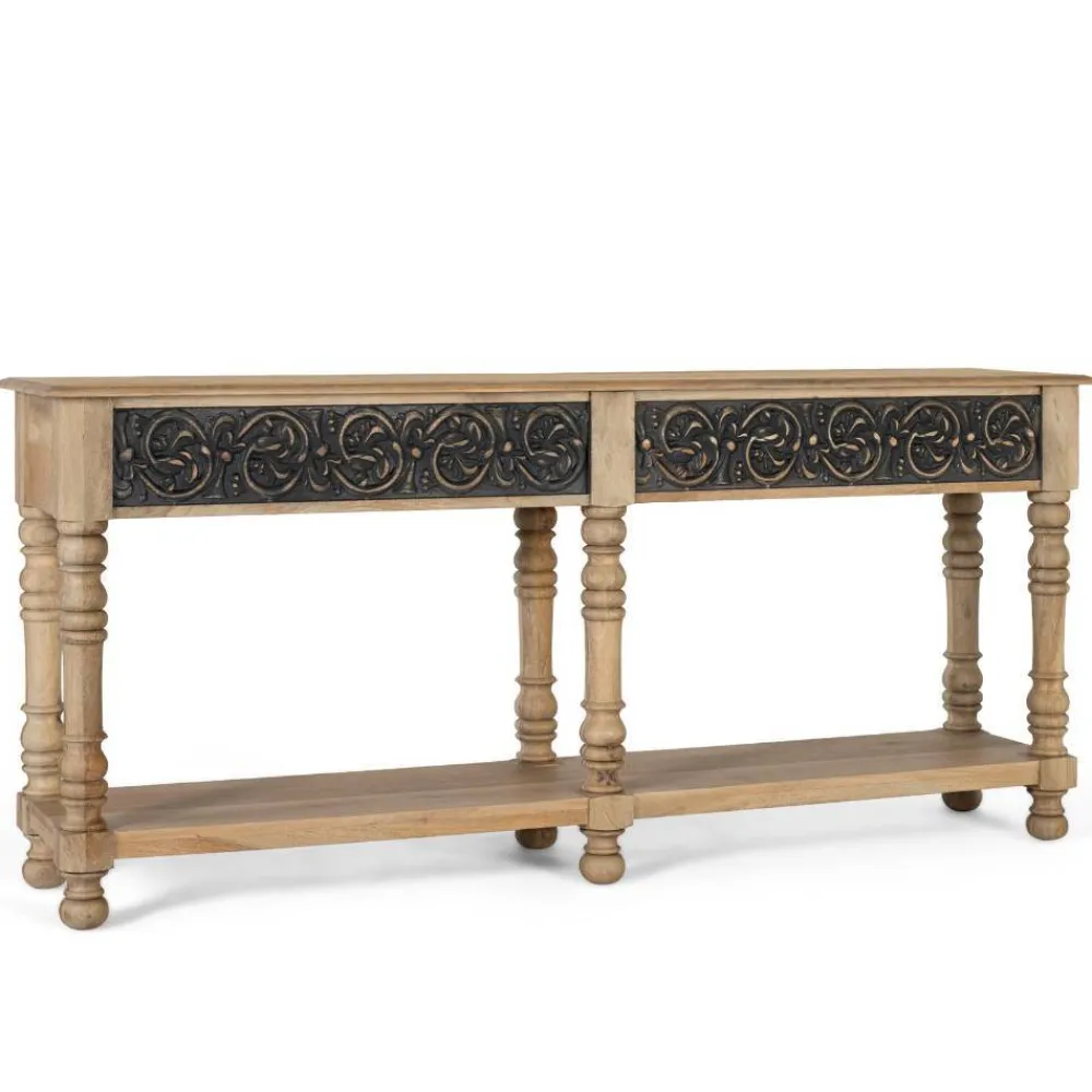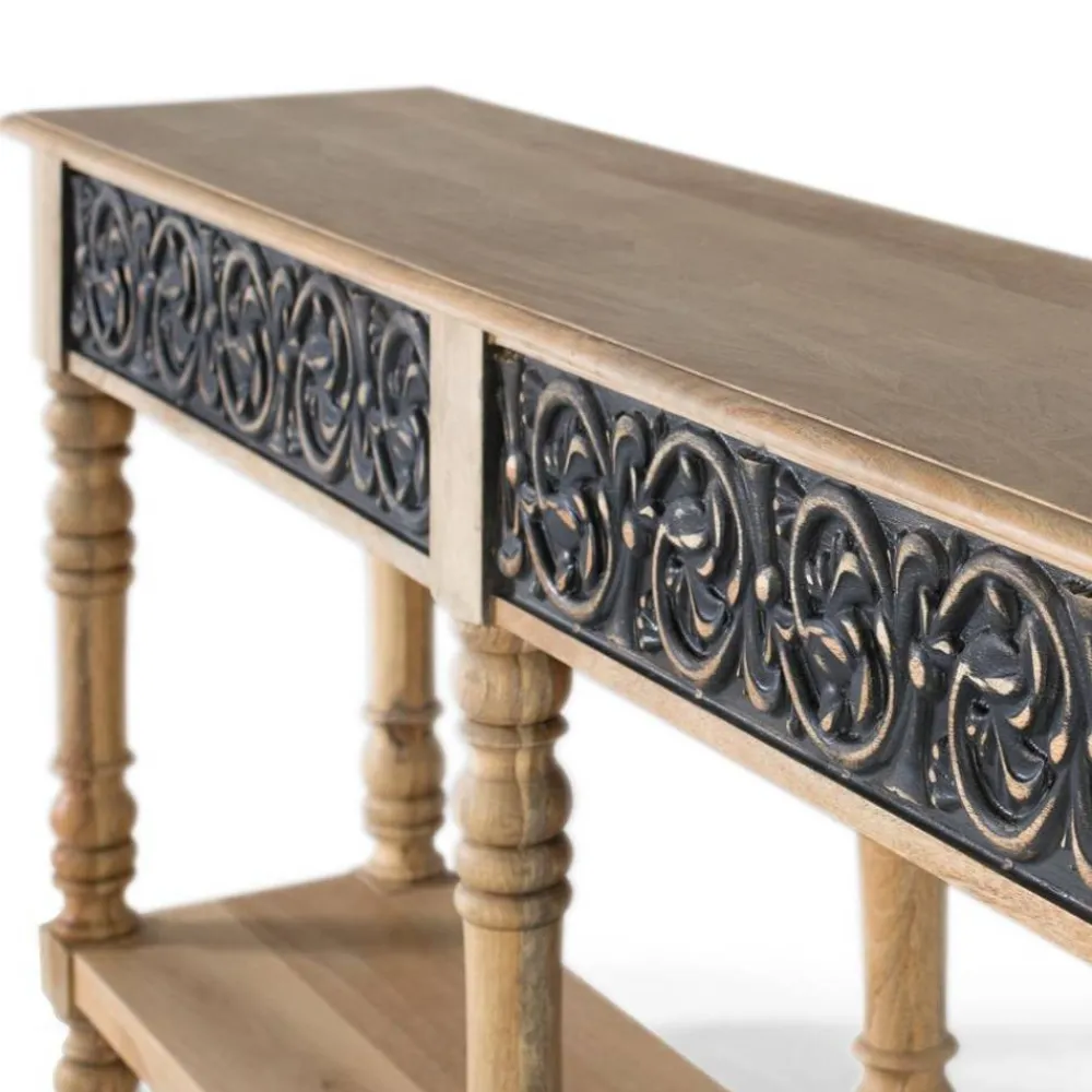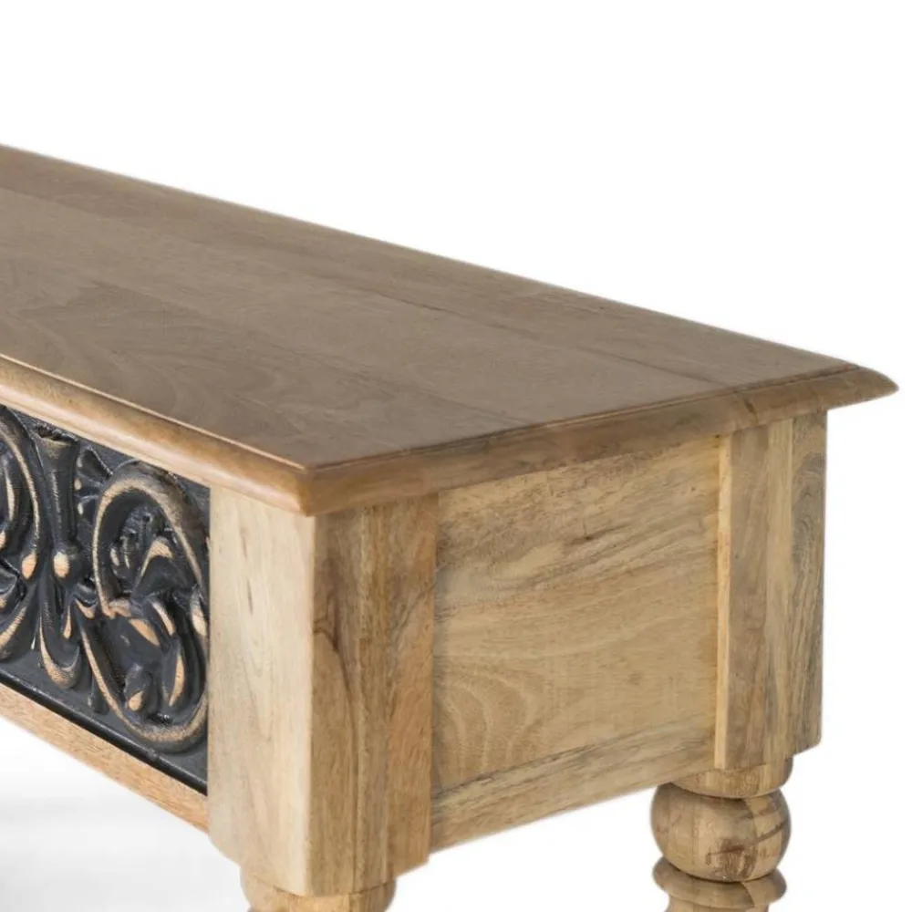 - Exklusive Konsole in Mangoholz Naturfarben und Dunkelgrau