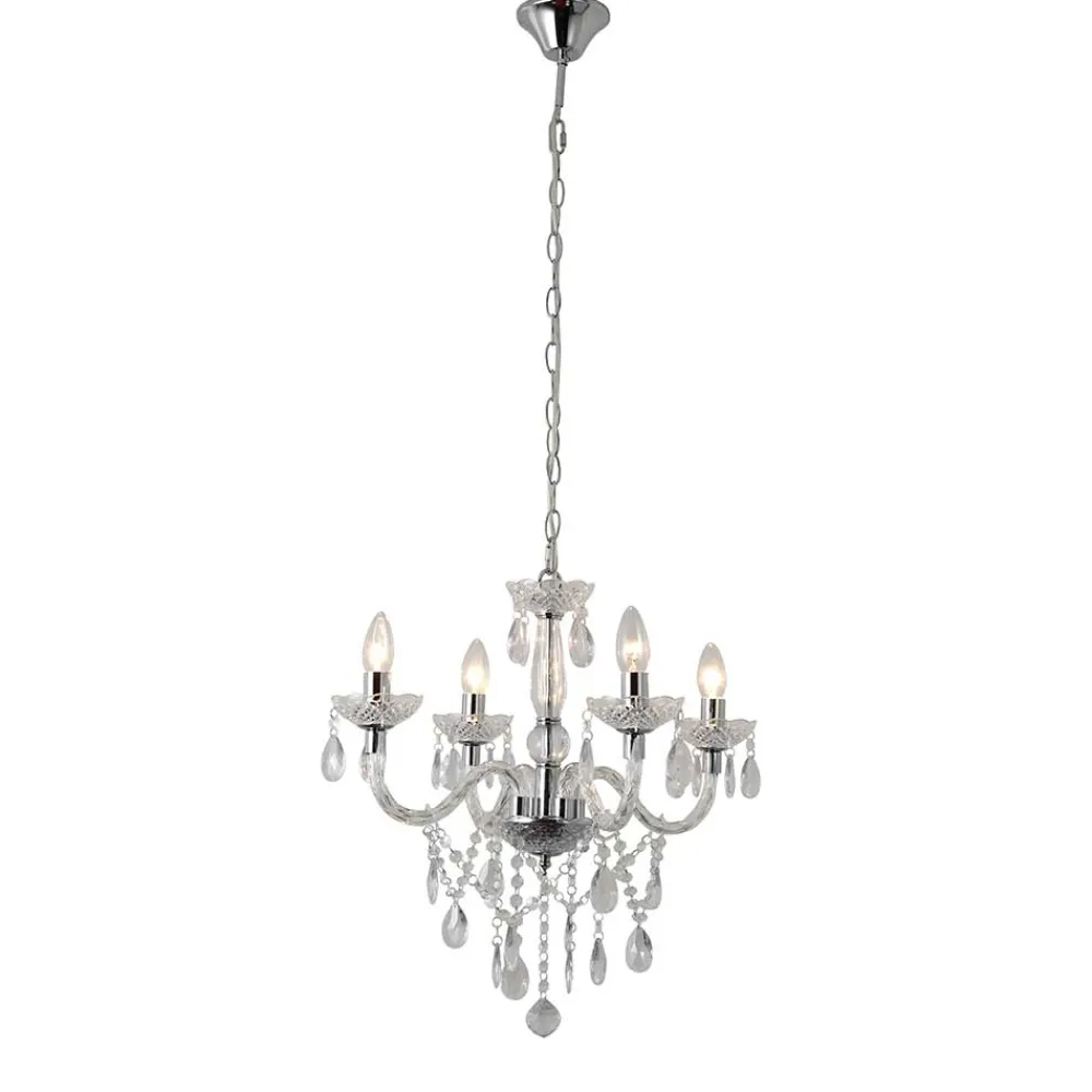- Opulenter Kronleuchter in Transparent und Silberfarben 4-flammig