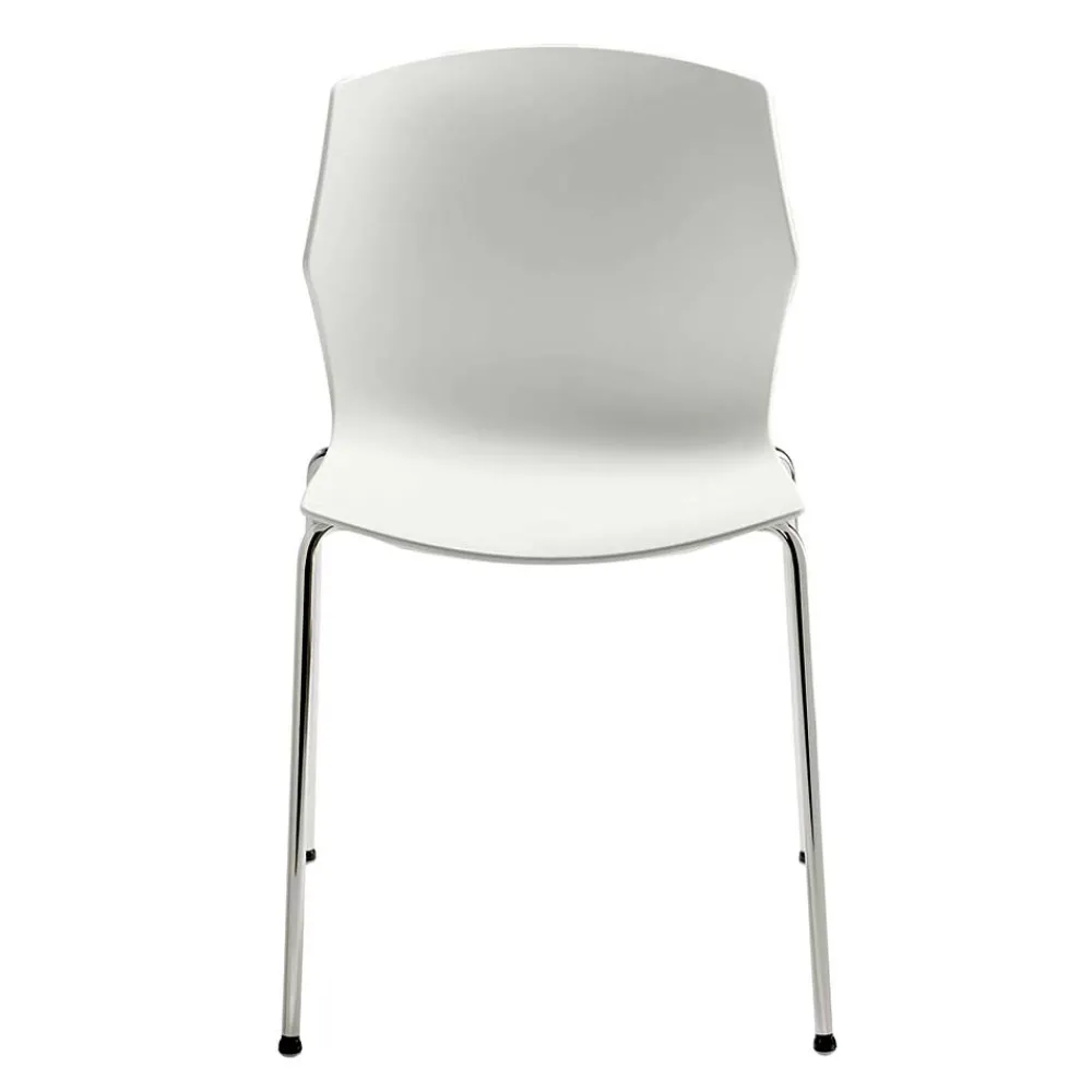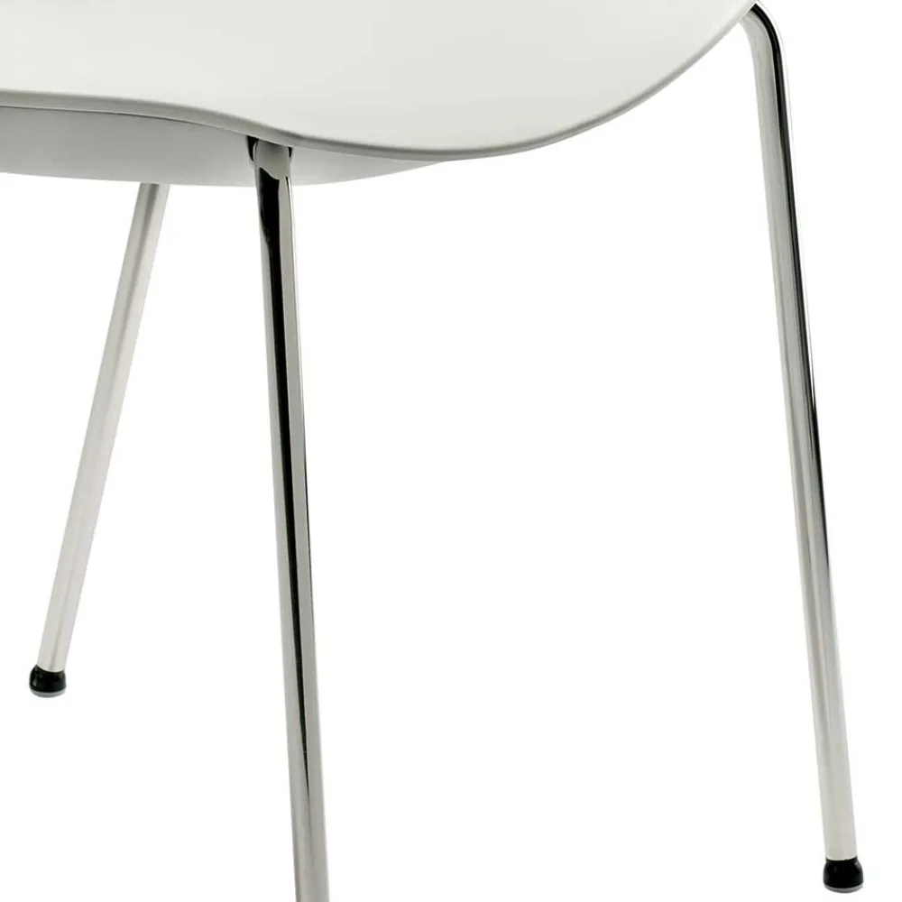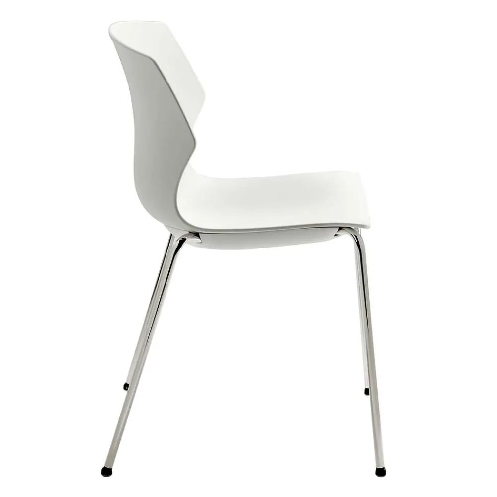 - Dezenter Stapelstuhl in Weiß und Chromfarben