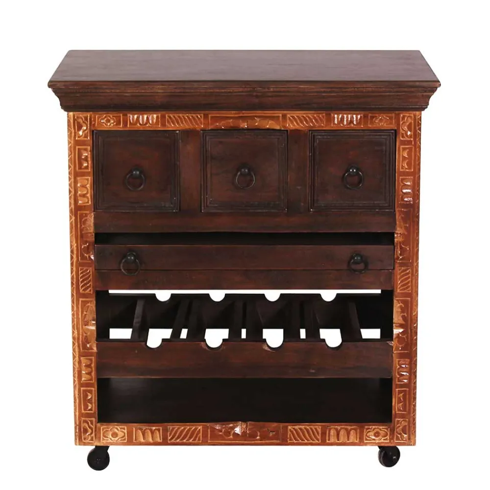 - Praktischer Küchenwagen in Teak antik Dunkelbraun