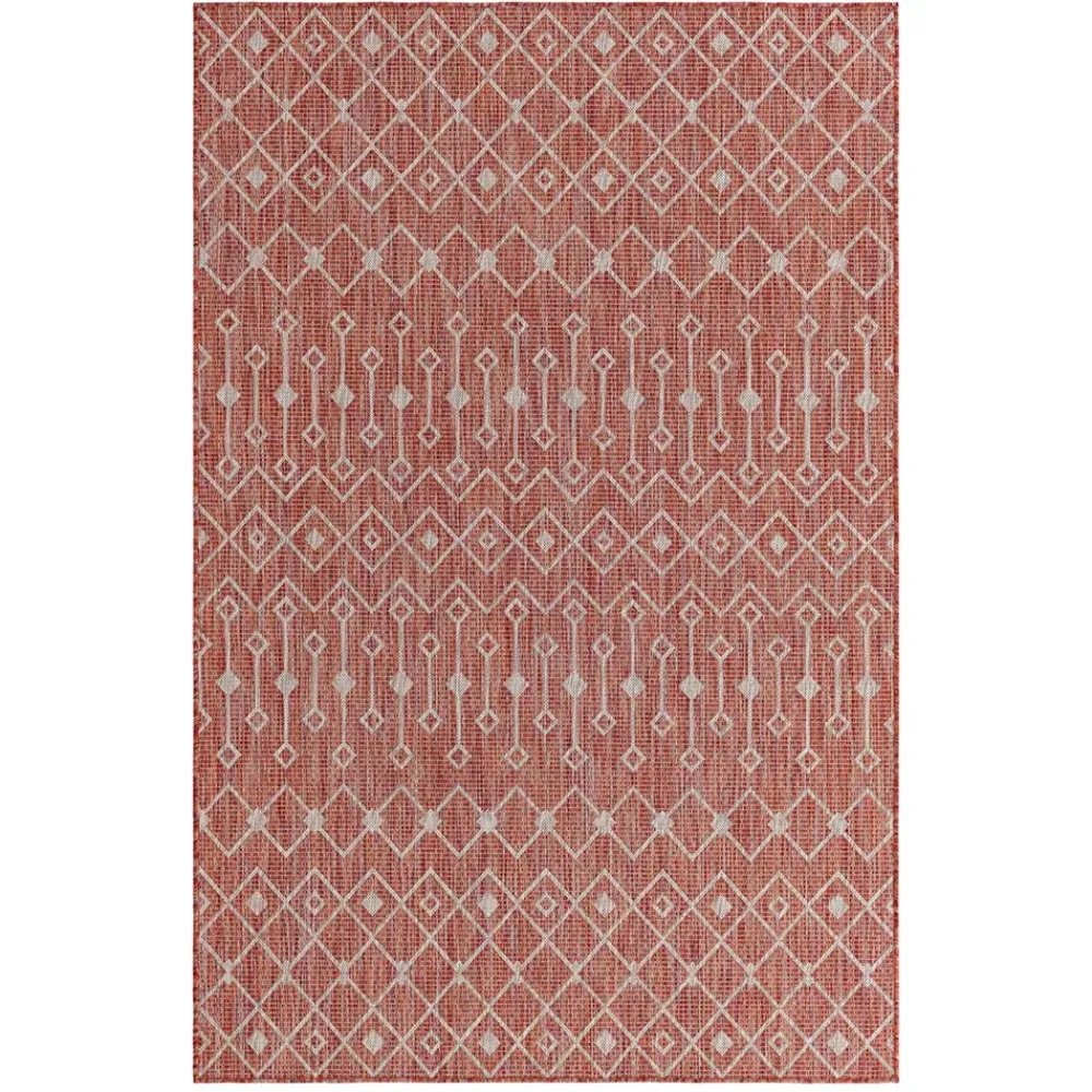 in Rostrot und Cremefarben mit geometrischem Muster