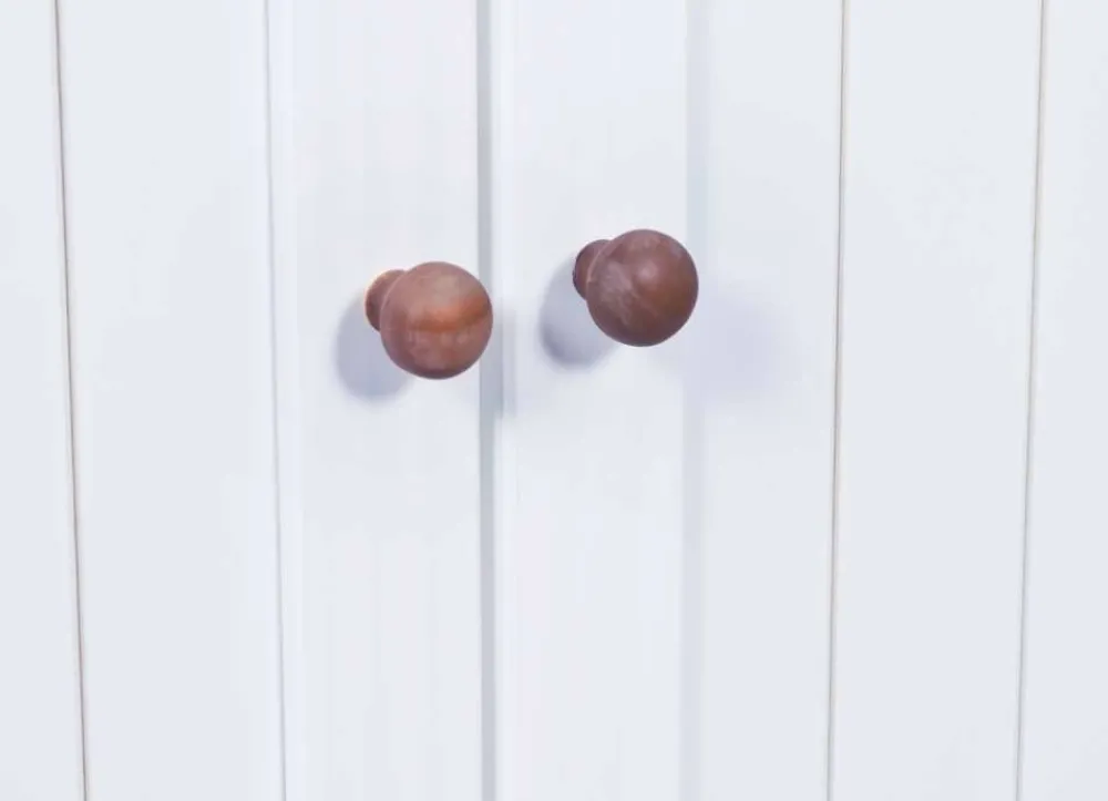 - Zierliche Knopfgriffe aus Holz, farblich abgesetzt
