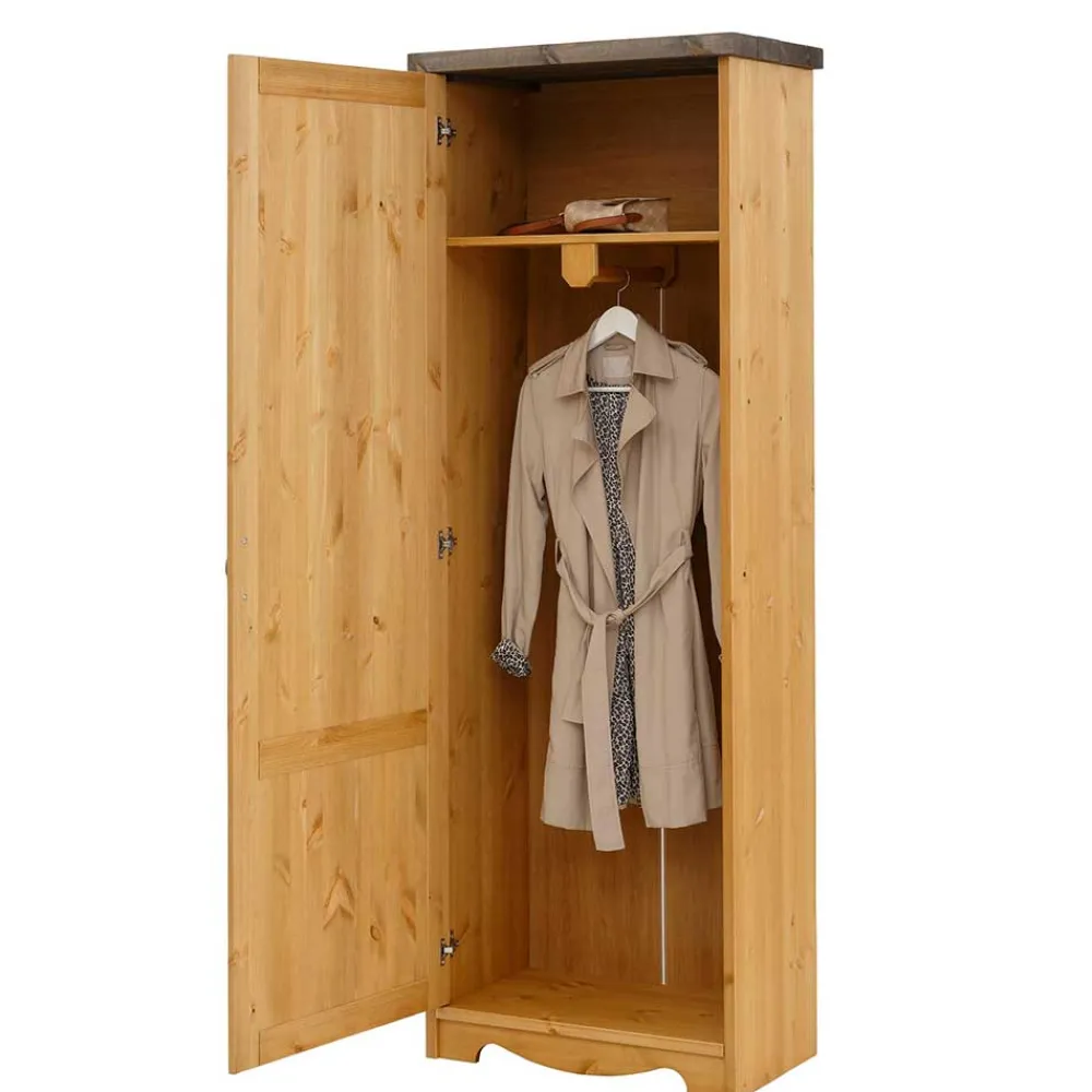 - Innen befinden sich eine Kleiderstange und ein Hutboden