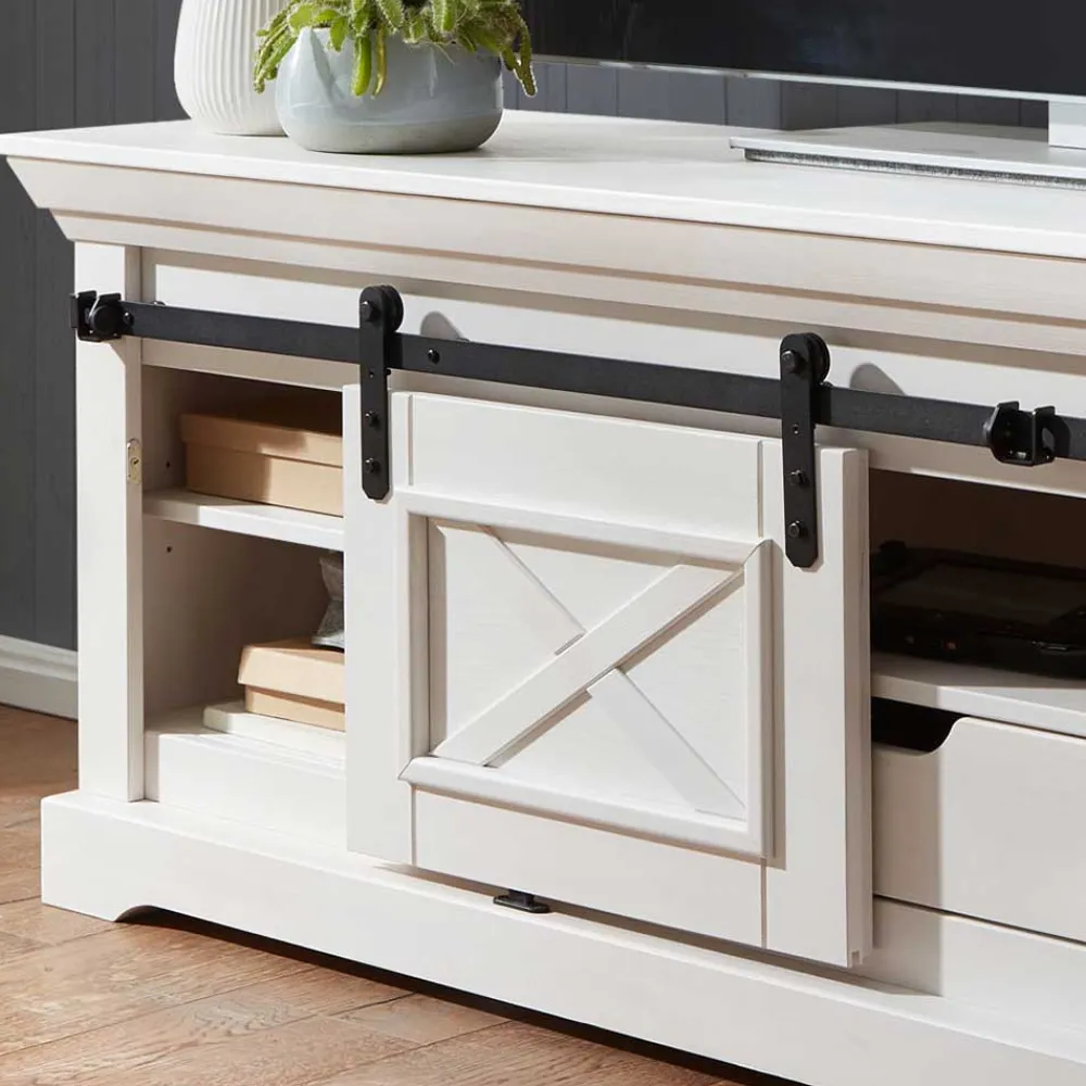 - Eine Schiebetür mit aufgesetzten Leisten im Country Look