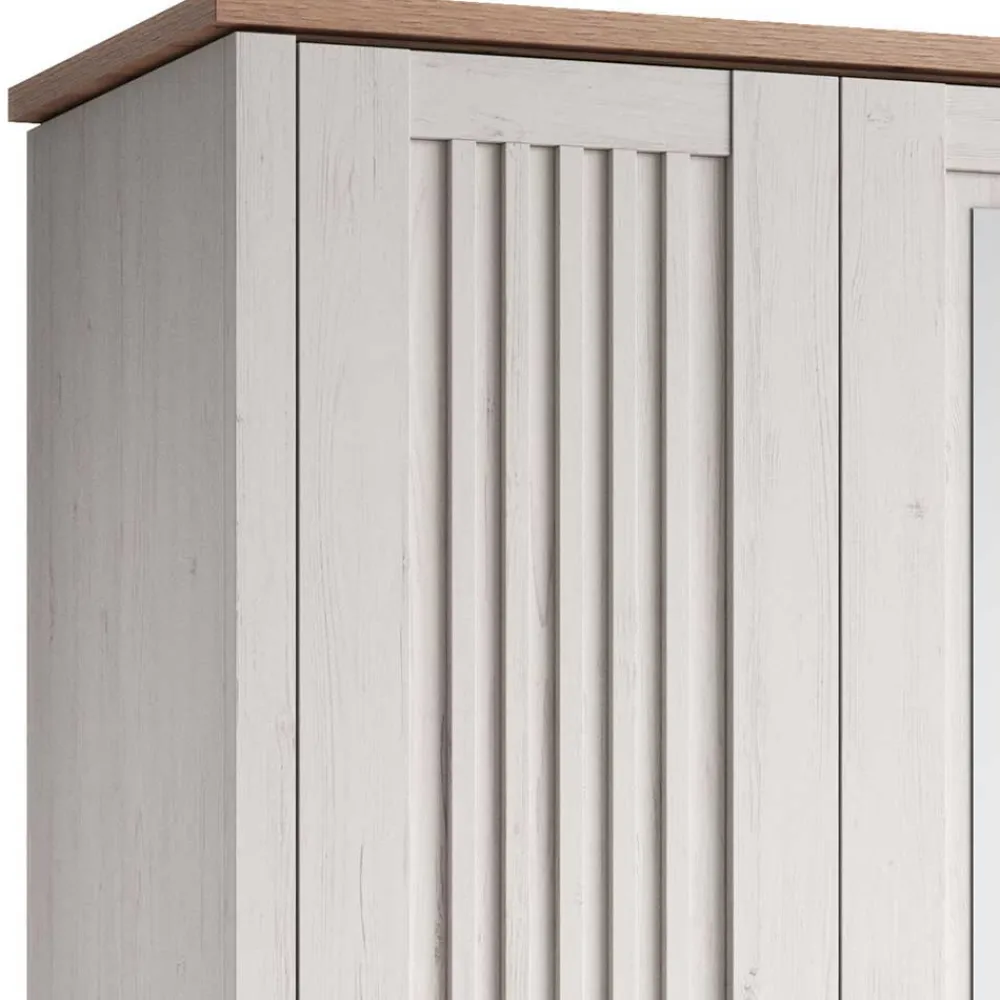 - Fronten in Kassettenoptik, außen zusätzlich mit aufgesetzten Leisten verschönert