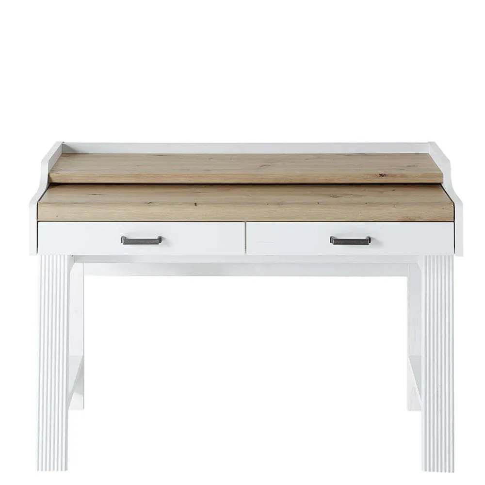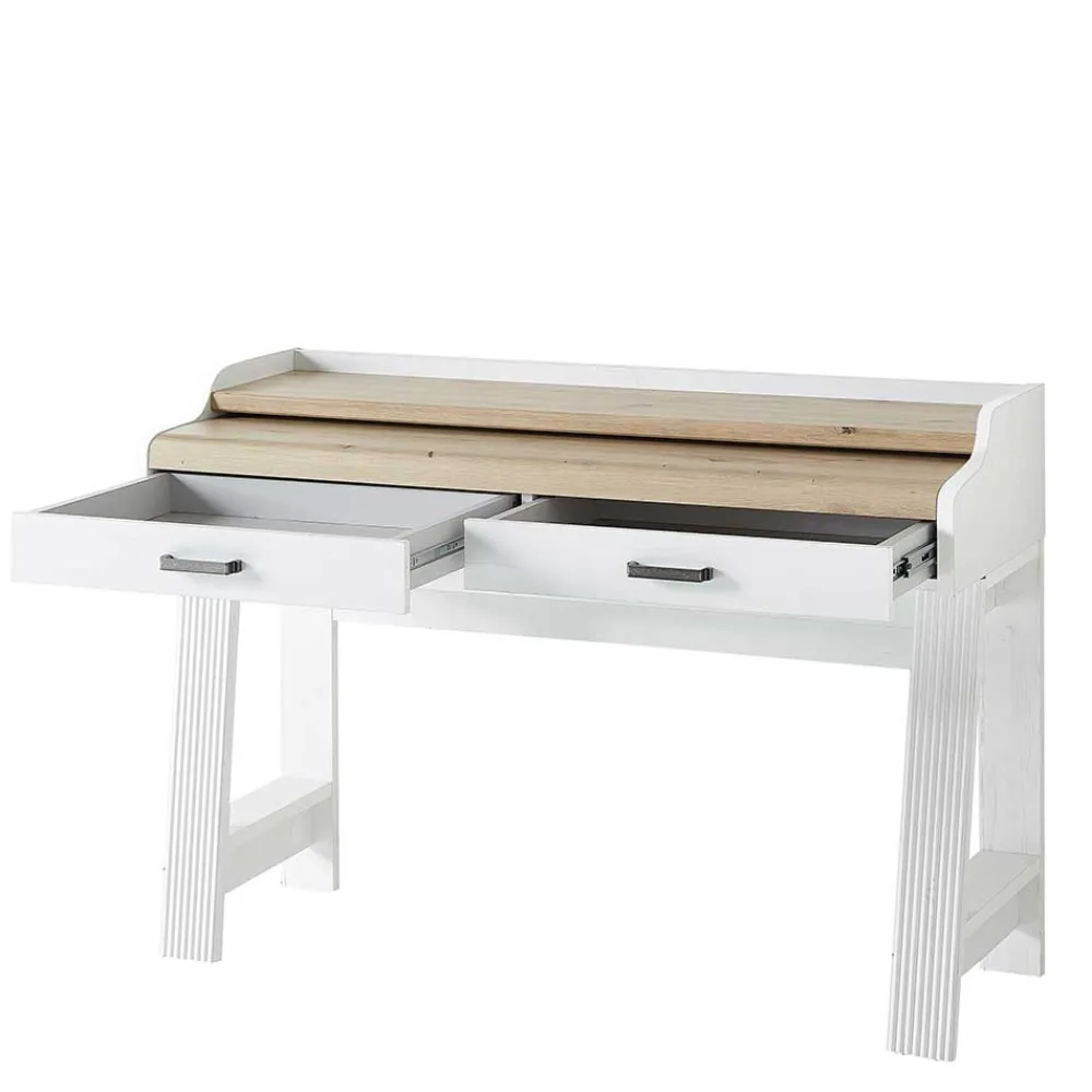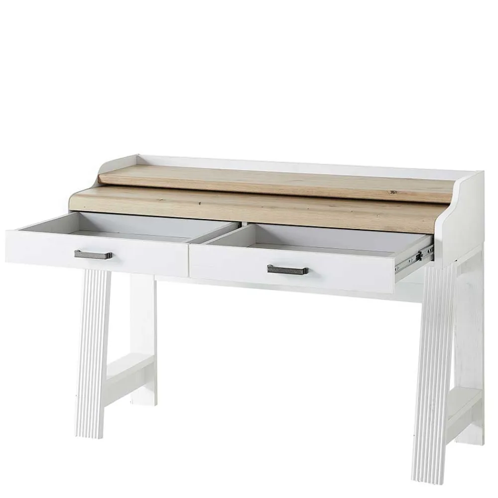 - Funktionaler Schreibtisch in Pinie Weiß und Eichefarben