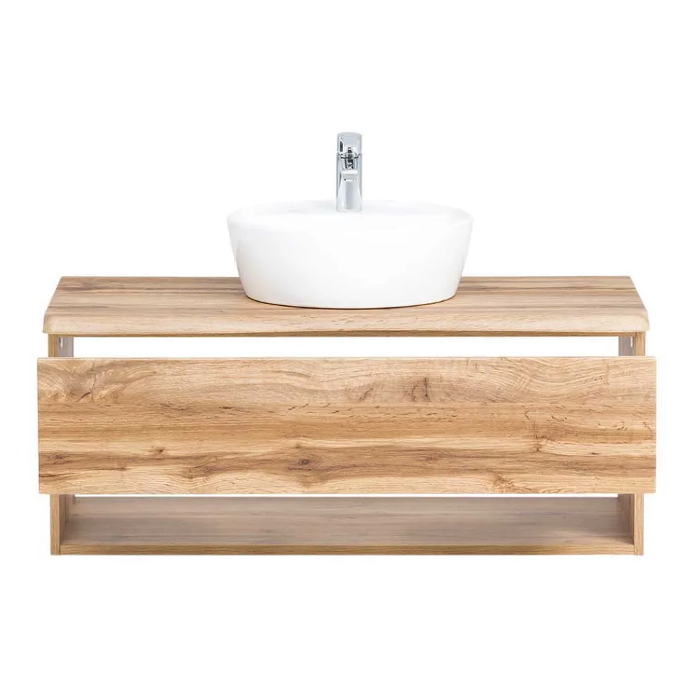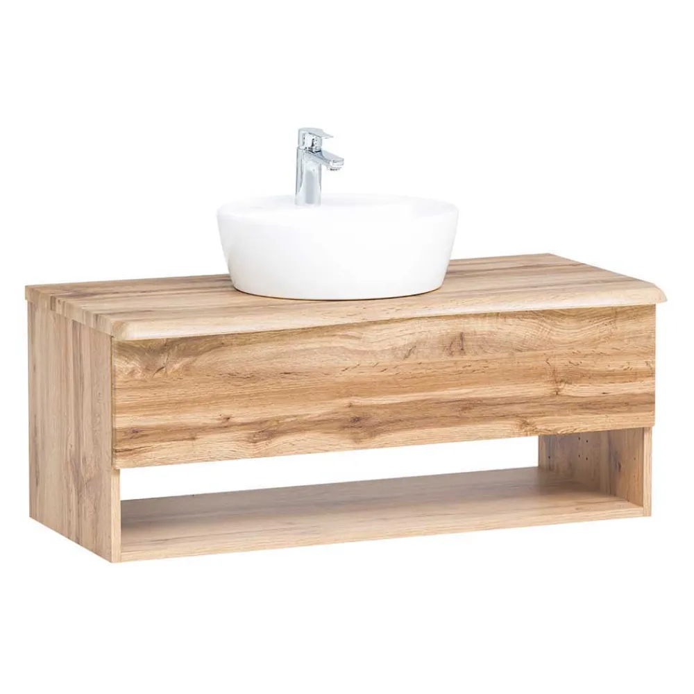 - Attraktive Badmöbel in Wildeichefarben mit Baumkantenoptik