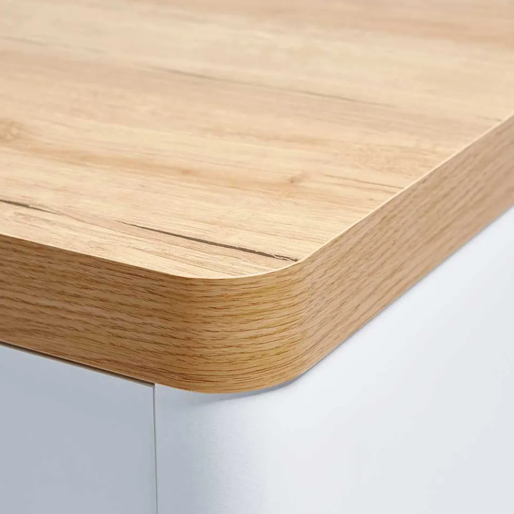 - Oberfläche in Holzoptik Kerneiche und in Weiß melaminbeschichtet