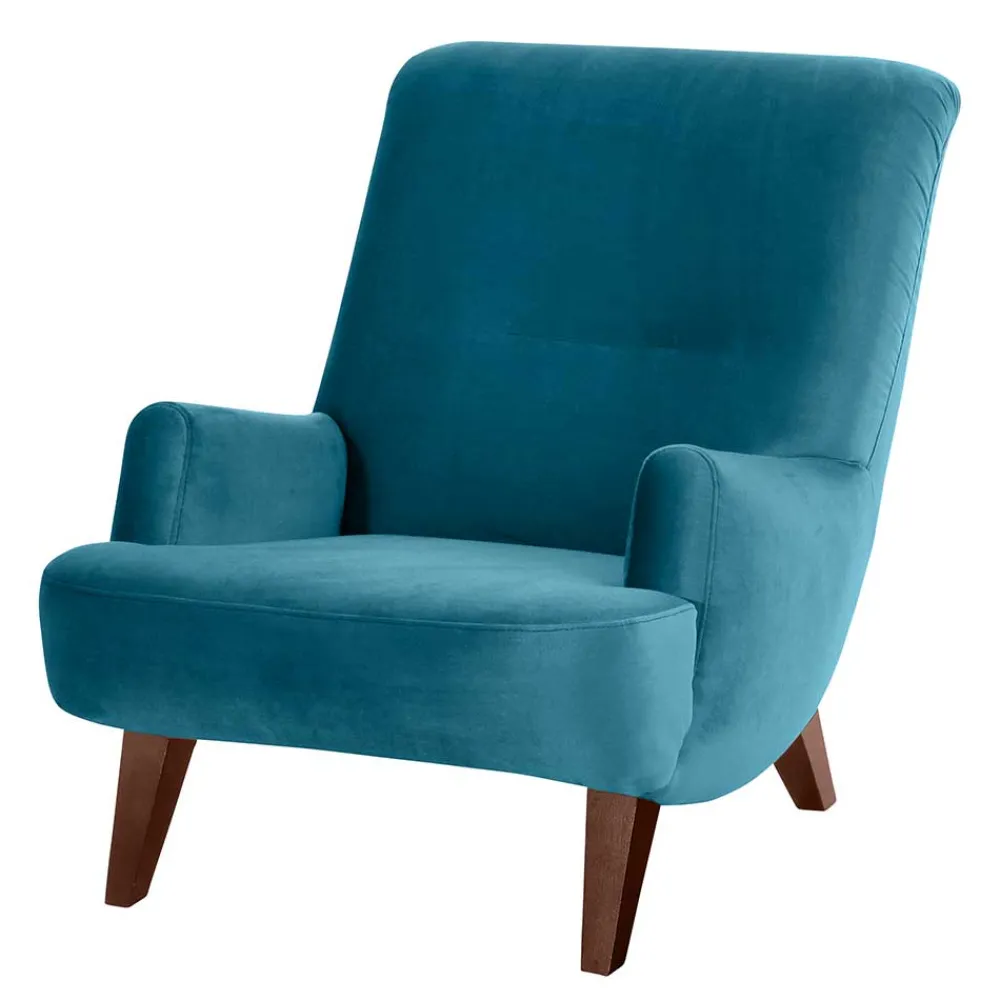 - Trendiger Sessel in Petrol und Nussbaumfarben