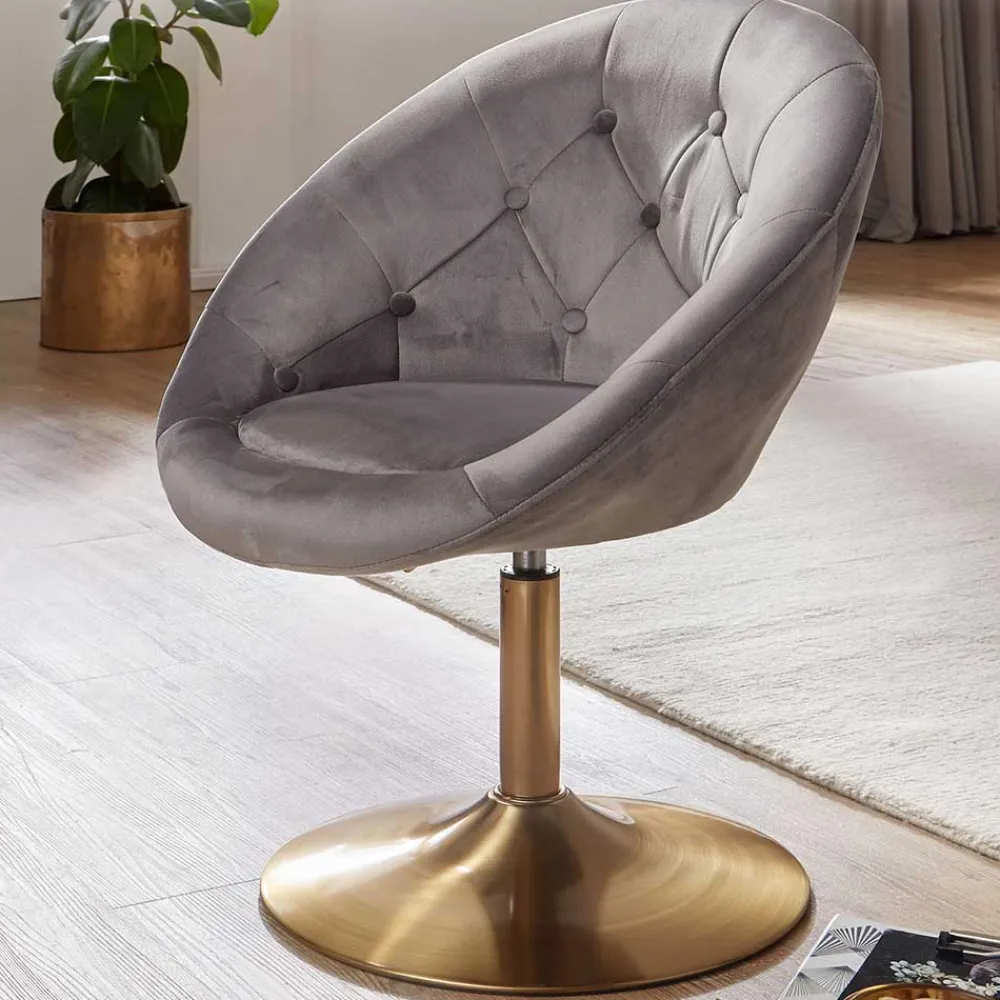 - Erstklassiger Esszimmer Sessel in Grau und Goldfarben