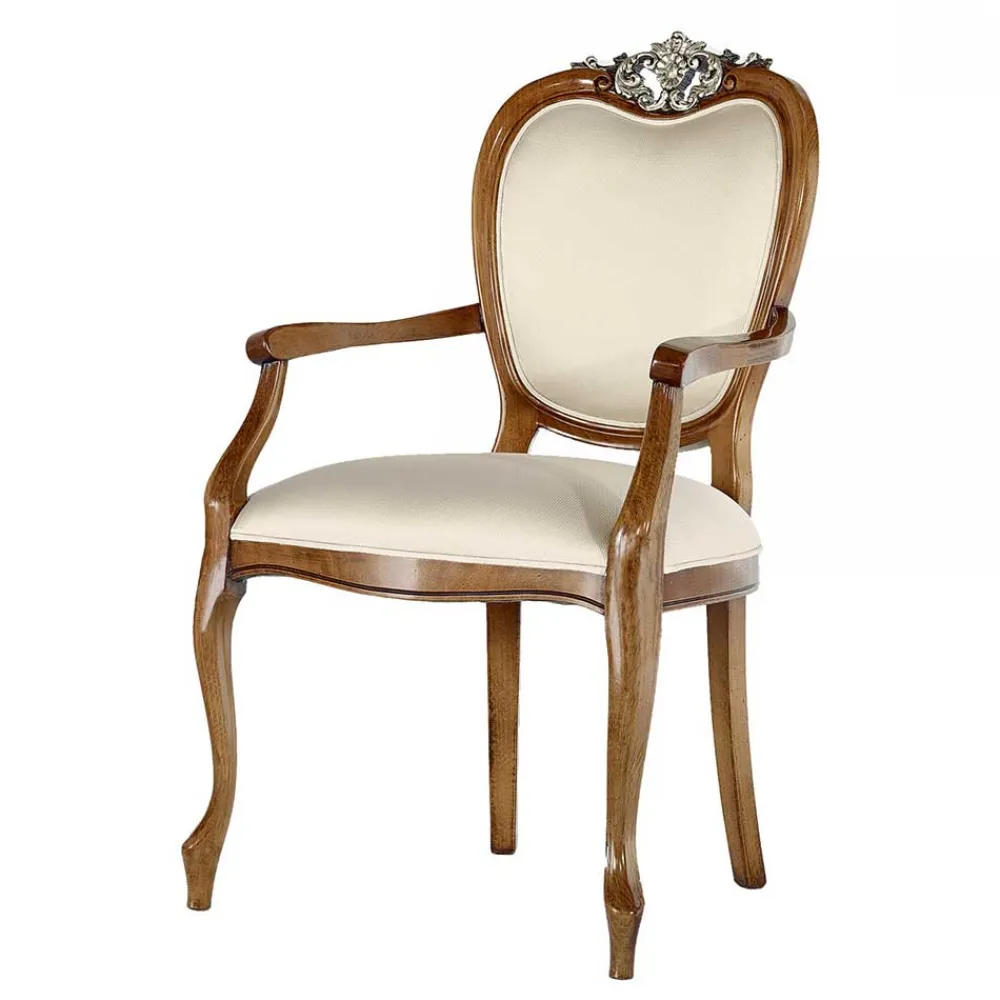 - Rückenlehne in Medaillonform mit silberfarbig lackierter Schnitzerei