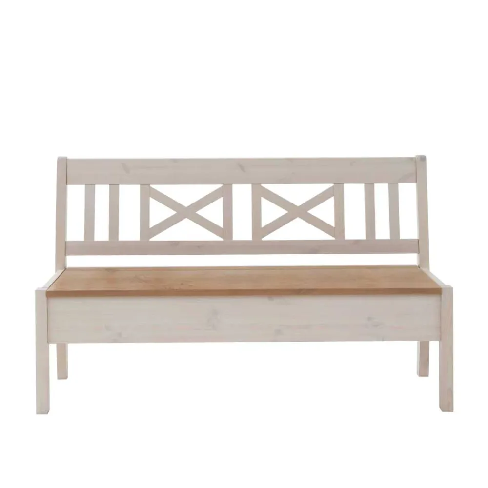 - Attraktive Sitzbank in Weiß und Kiefer laugenfarbig