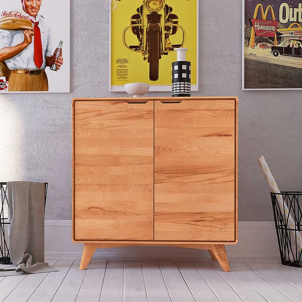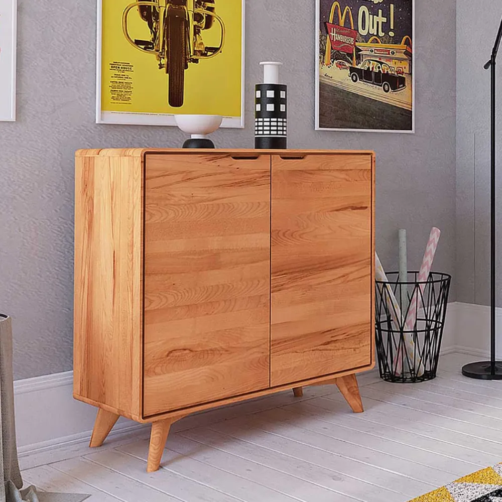 - Innen eine Mittelwand und pro Seite zwei Einlegeböden