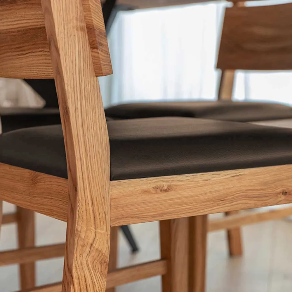 - Aus Wildeiche Massivholz und Kunstleder hergestellt