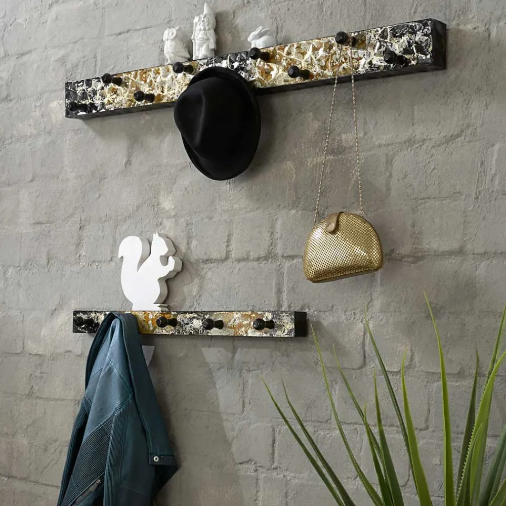 - Extravagante Garderobenleiste in Schwarz und Goldfarben