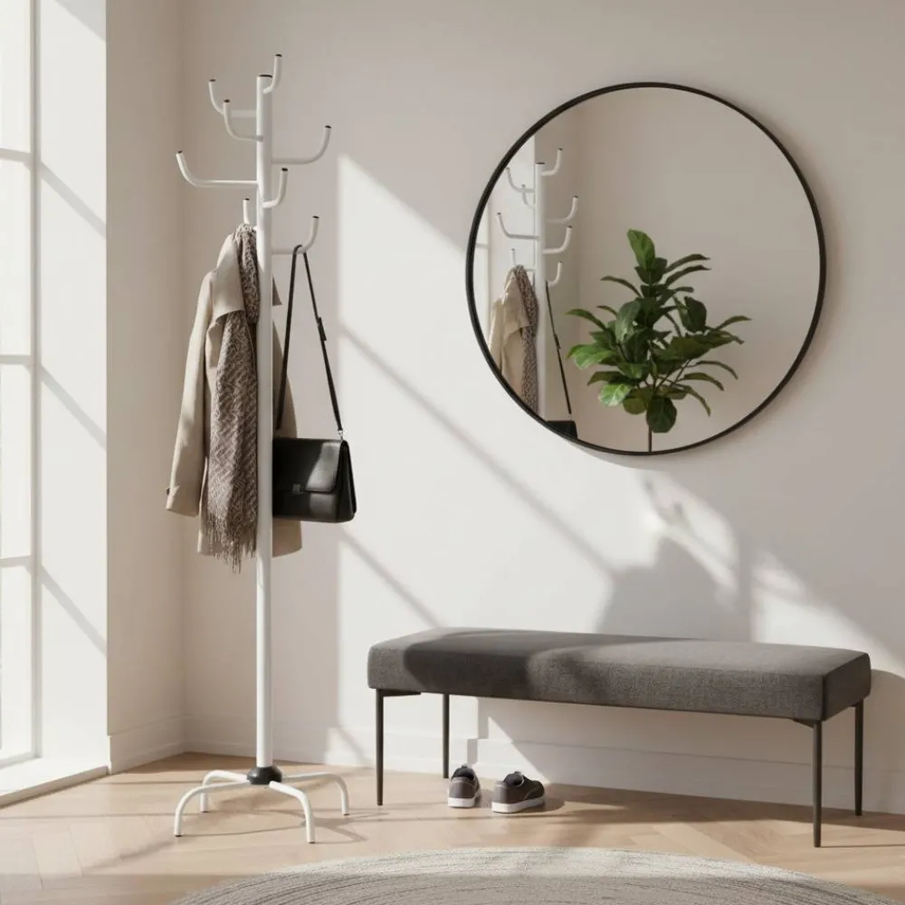 - Acht Aufhänger mit schwarzen Kunststoffaufsätzen an den Enden