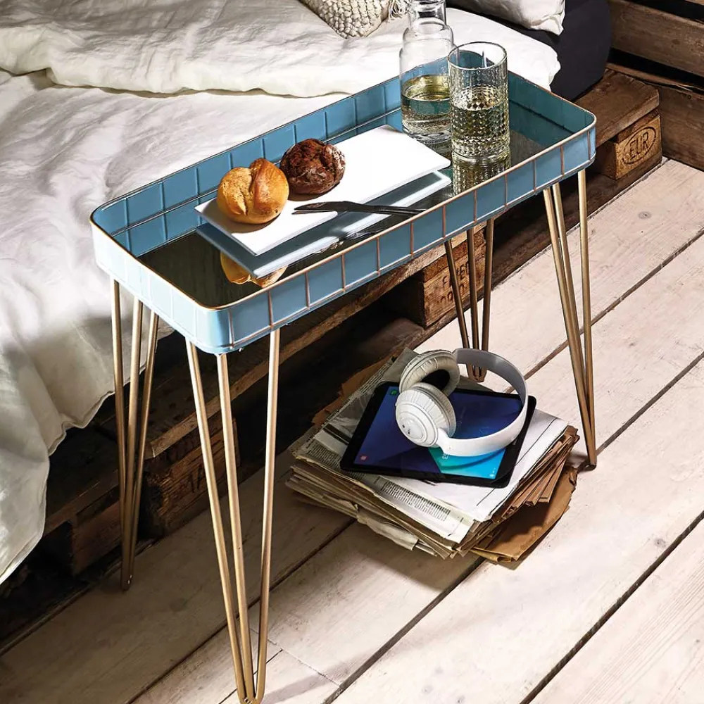 - Attraktiver Beistelltisch in Hellblau und Bronzefarben