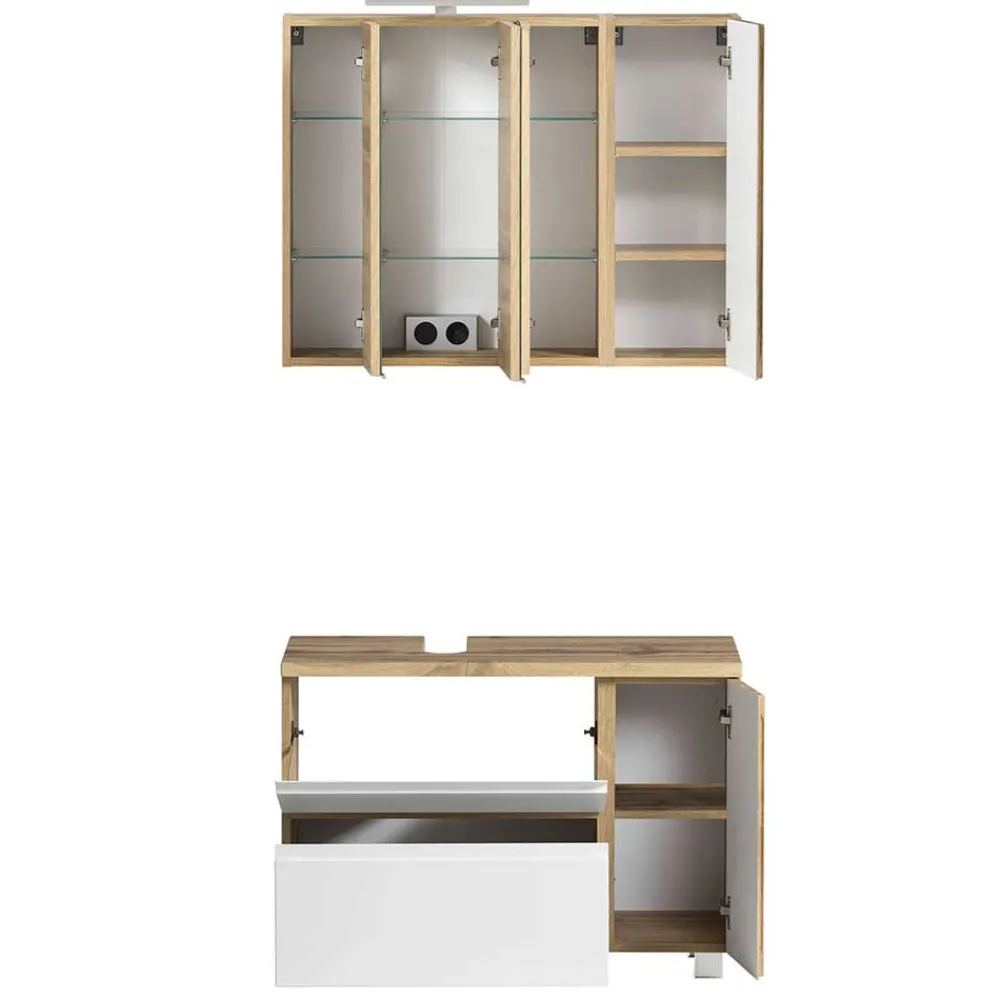 - Trendige Badmöbel in Weiß und Wildeichefarben