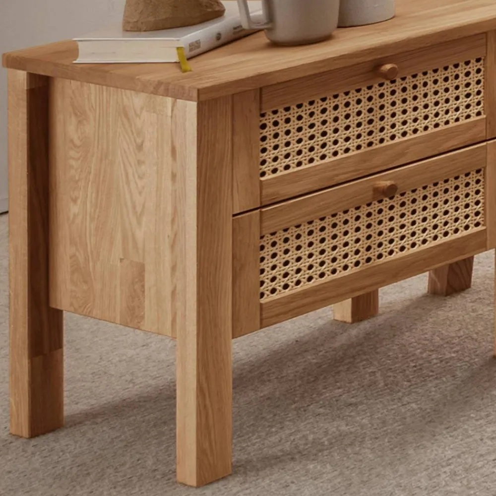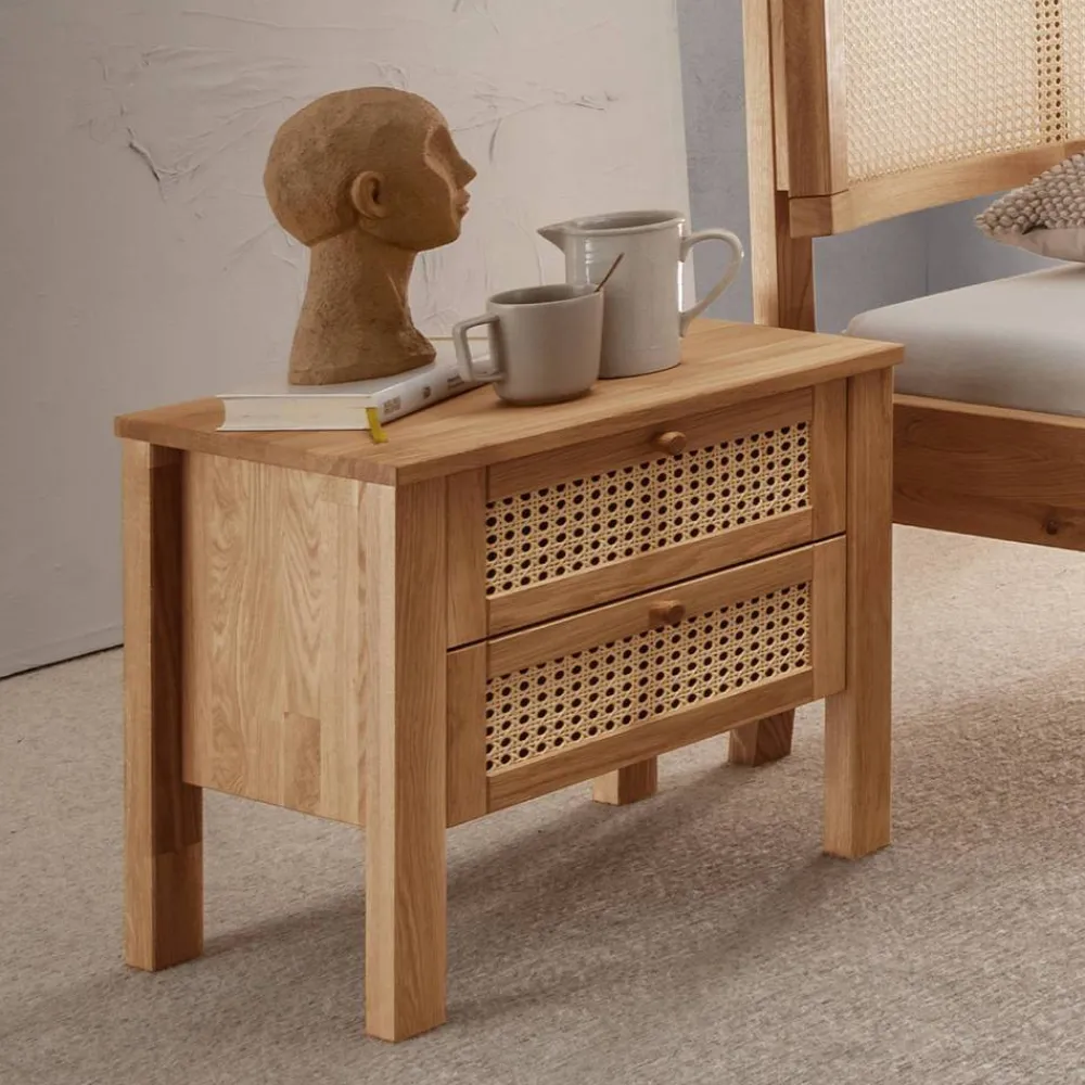 - Solide Nachtkommode in Wildeichefarben und Beige