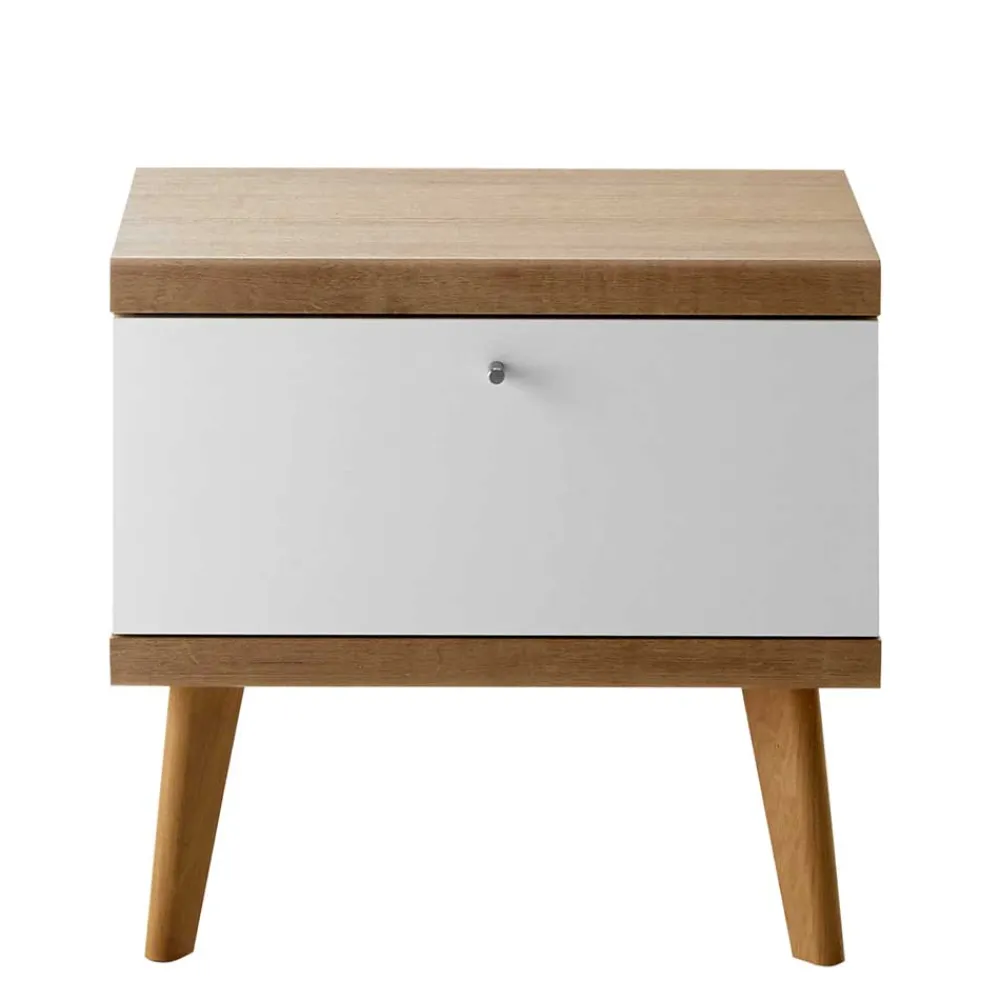 - Trendige Nachtkommode in Weiß und Eichefarben