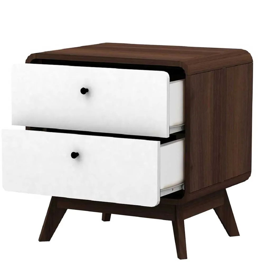 - Kompakte Nachtkommode in Walnussbraun und Weiß