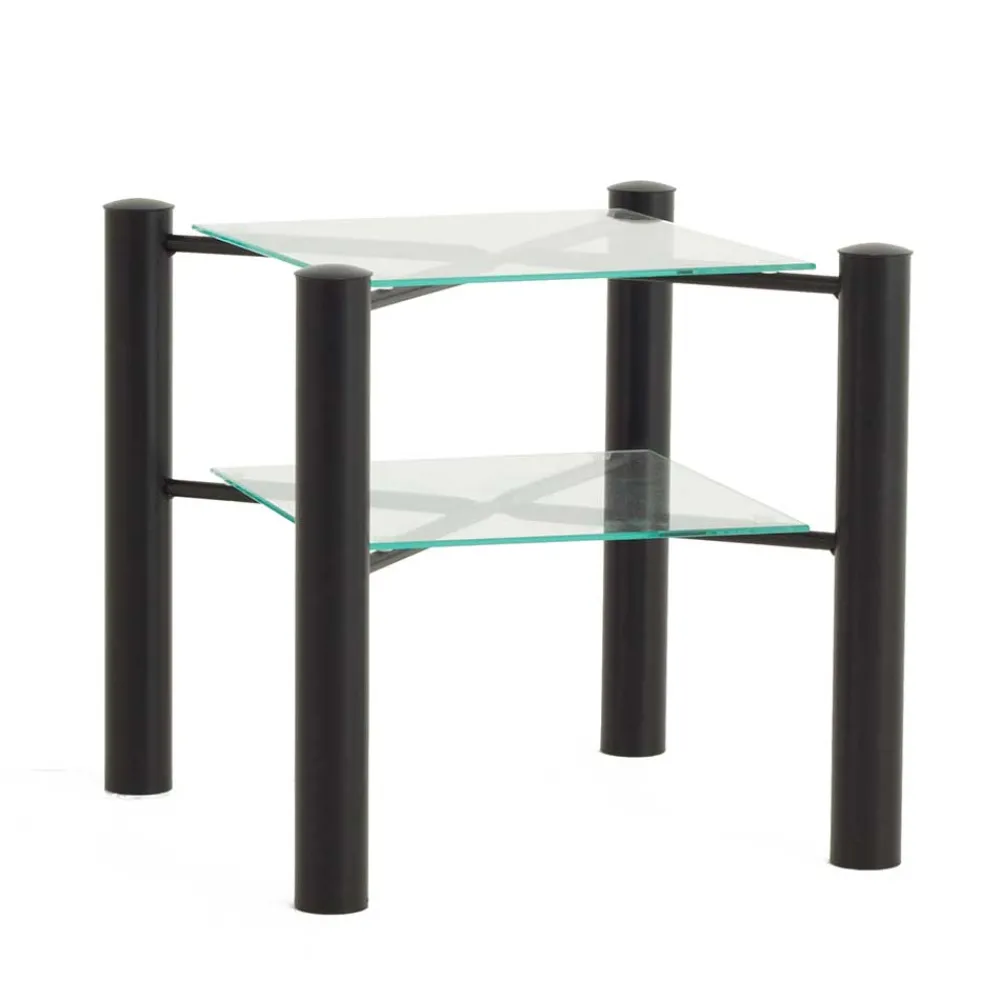 - Tischplatte und zusätzliche Ablagefläche aus Glas