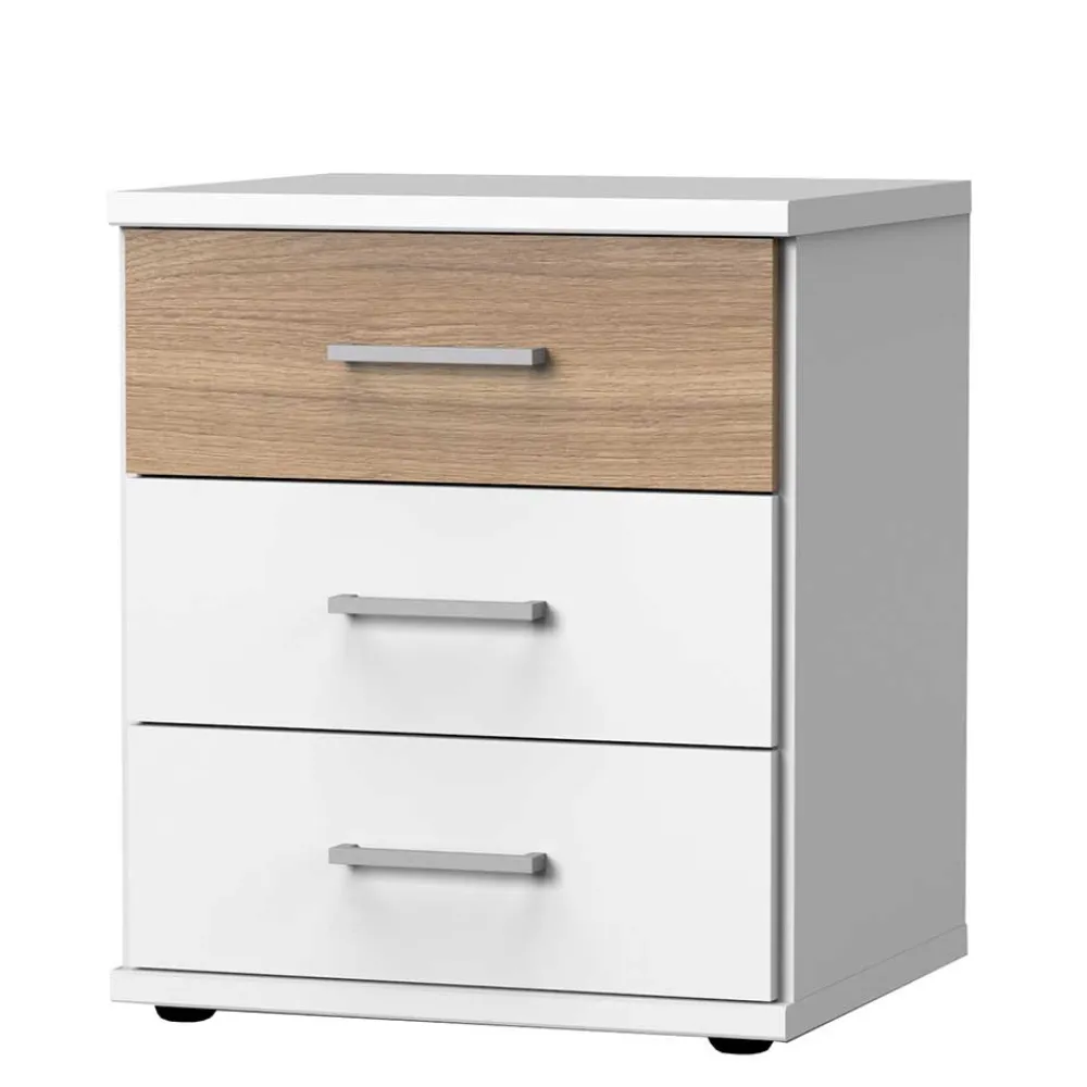 - Kompakte Nachtkommode in Weiß und Eichefarben